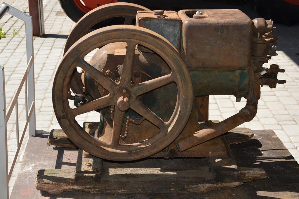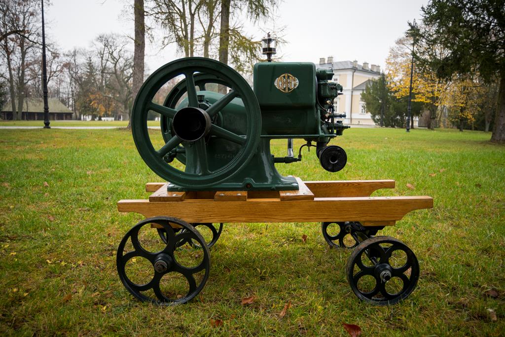 Silnik stacjonarny IHC M 3 HP został zbudowany w 1926 r. przez amerykańską firmę International Harvester Company w Chicago. Dzięki przeprowadzonej konserwacji dokładnie sprecyzowano jego rok produkcji. Był on przeznaczony do napędu stacjonarnych urządzeń gospodarskich, np. małej młocarni. Jego waga własna wynosi 230 kg, a z wózkiem transportowym ok. 320 kg. Jest to silnik gaźnikowy o mocy 3 KM (2,2 kW) przy 600 obr/min, przystosowany do spalania benzyny lub nafty z domieszką wody, poziomy, 1-cylindrowy o pojemności 1212 cm3, 4-suwowy, chłodzony wodą przez jej odparowanie, z rozrządem zaworowym i regulatorem obrotów. Z prawej i lewej strony silnika na wale korbowym osadzone 2 szprychowe koła zamachowe o szerokości 6 cm i średnicy 53,5 cm. Do prawego koła zamachowego przymocowane jest koło pasowe o szerokości 14 cm i średnicy 12,8 cm. Lewa strona wału korbowego przystosowana do podłączenia korby do ręcznego rozruchu silnika.