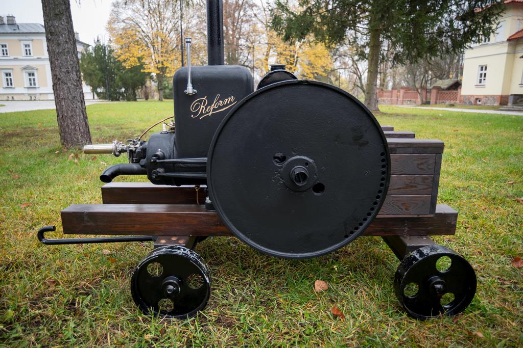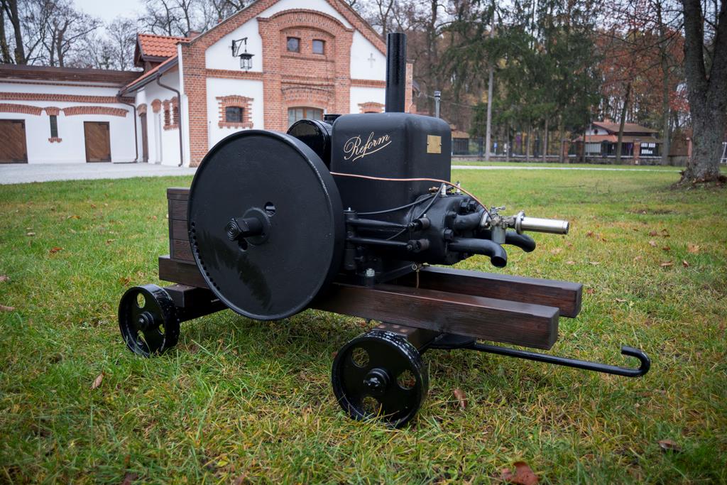 Silnik stacjonarny REFORM KLASSE F II zbudowano ok. 1925 r. w niemieckiej firmie Reform-Motoren-Fabrik w Böhlitz-Ehrenberg. Działania konserwatorskie pozwoliły na dość dokładne określenie daty jego wytworzenia. Był on przeznaczony do napędu stacjonarnych urządzeń gospodarskich, np. młocarni. Jest to silnik gaźnikowy o mocy 9-10 KM (6,6-7,4 kW) przy 600-700 obr/min, przystosowany do spalania benzyny lub nafty, poziomy, 2-cylindrowy o pojemności 2596 cm3, 4-suwowy, chłodzony wodą przez jej odparowanie, z bocznym rozrządem zaworowym i regulatorem obrotów. Z prawej i lewej strony silnika na wale korbowym osadzone są 2 pełne koła zamachowe o szerokości 5,5 cm i średnicy 55 cm. Lewa strona wału korbowego przystosowana jest do podłączenia korby do ręcznego rozruchu silnika. Silnik REFORM KLASSE F II został podarowany Muzeum Rolnictwa w Ciechanowcu w październiku 2018 r. przez Zespół Szkół Centrum Kształcenia Rolniczego im. Jadwigi Dziubińskiej w Golądkowie. Niestety brak dokładnych danych o jego wcześniejszej historii. Do muzeum trafił jako niesprawny i z wieloma brakami podzespołów. W okresie od września do listopada 2019 r. został poddany gruntownej konserwacji z doprowadzeniem do pełnej sprawności technicznej i kolorystyką producenta.
