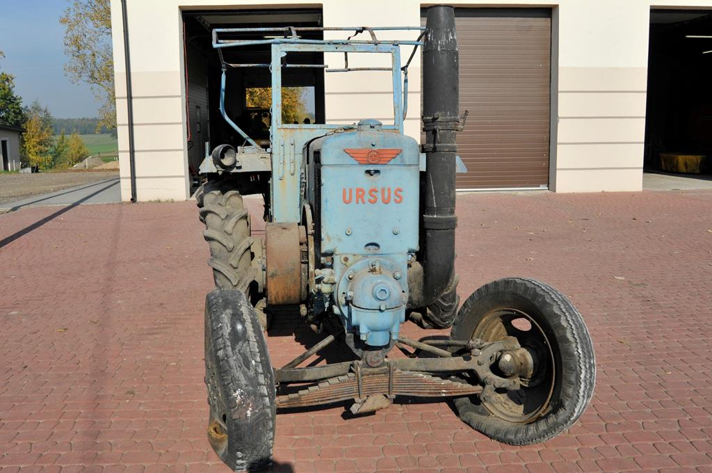 Ciągnik URSUS C-45 wyprodukowano w 1951 r. w Zakładach Mechanicznych „URSUS” w Ursusie. Dzięki konserwacji można było dokładnie sprecyzować jego rok produkcji. Jest to ciągnik kołowy przeznaczony do ciężkich prac polowych i transportowych. Ma budowę bezramową. Jego waga wynosi 3680 kg. Wyposażony jest w 2-suwowy, poziomy, chłodzony cieczą, 1-cylindrowy silnik średnioprężny o pojemności 10300 cm3, mocy 45 KM (33 kW) i maksymalnych obrotach 650/min. Z silnikiem współpracuje 8-stopniowa skrzynia biegów z przyśpieszaczem (6 biegów do przodu + 2 do tyłu). Napęd przekładniowy skierowany na tylne koła ciągnika. Skrzynia biegów pozwala osiągnąć maksymalną prędkość jazdy do 16,7 km/h w przód i 11,9 km/h w tył.