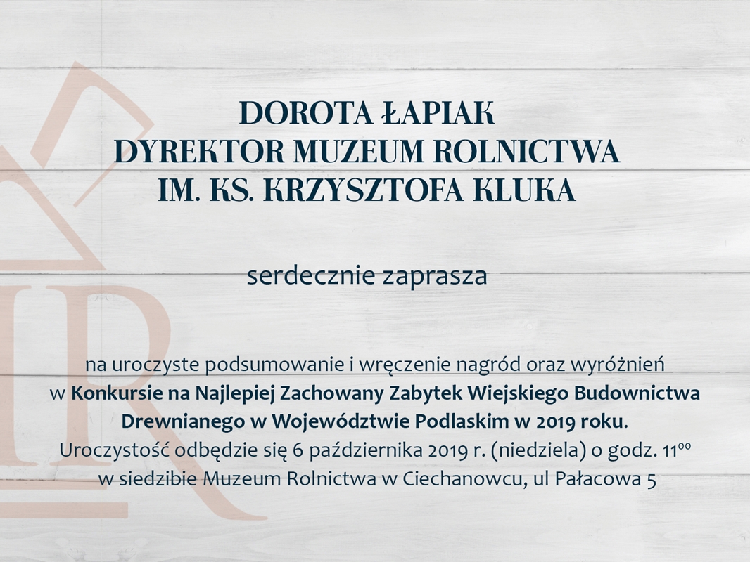 You are on: Konkurs na najlepiej zachowany zabytek wiejskiego budownictwa drewnianego w Województwie Podlaskim w 2019 r.