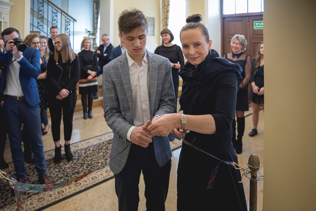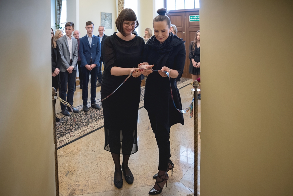 Symbolicznego otwarcia ekspozycji poprzez przecięcie wstęgi dokonali: Wiesława Giedrojć i Małgorzata Chmielecka – przedstawiciele Fundacji Rodziny Staraków oraz Dominika Szcześniak, Mateusz i Michał Godlewscy – reprezentanci najmłodszego pokolenia ciechanowieckich witrażystów.