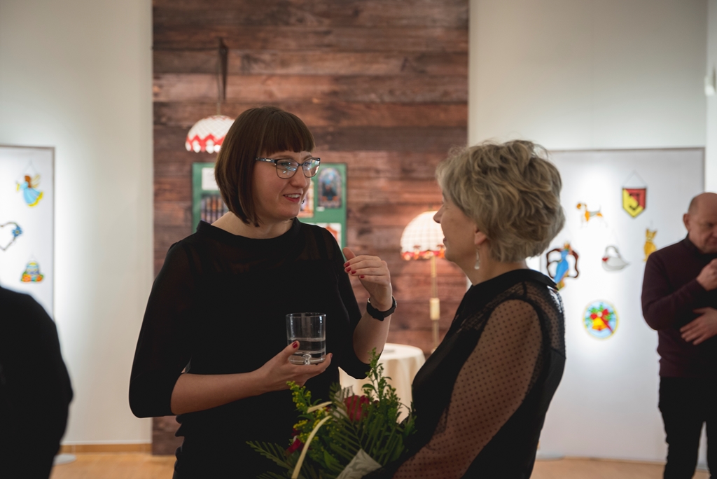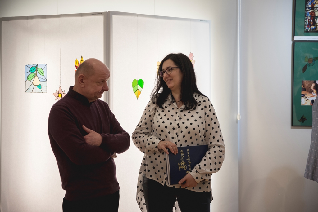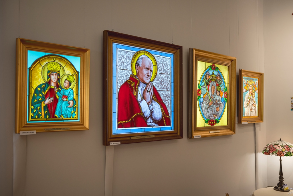 Na wystawie nie mogło zabraknąć prac ciechanowieckich mistrzów witrażu, którzy uczyli naszą uzdolnioną młodzież trudnej sztuki tworzenia szklanych obrazów malowanych światłem. Na pierwszej sali zobaczą Państwo dzieła państwa Wiery, Romana i Adama Godlewskich, a także ich podopiecznych Joanny Ryczkowskiej, Michała i Mateusza Godlewskich notabene wnuczków założycieli ciechanowieckiej pracowni witraży, istniejącej od 1974 r. Na drugiej sali wyeksponowano prace uczniów Łukasza Porucznika, Julii Sabak, Weroniki Siedleckiej i Dominiki Szcześniak obok dzieł ich mistrza witrażu – pana Stanisława Szcześniaka z Zadobrza koło Ciechanowca.