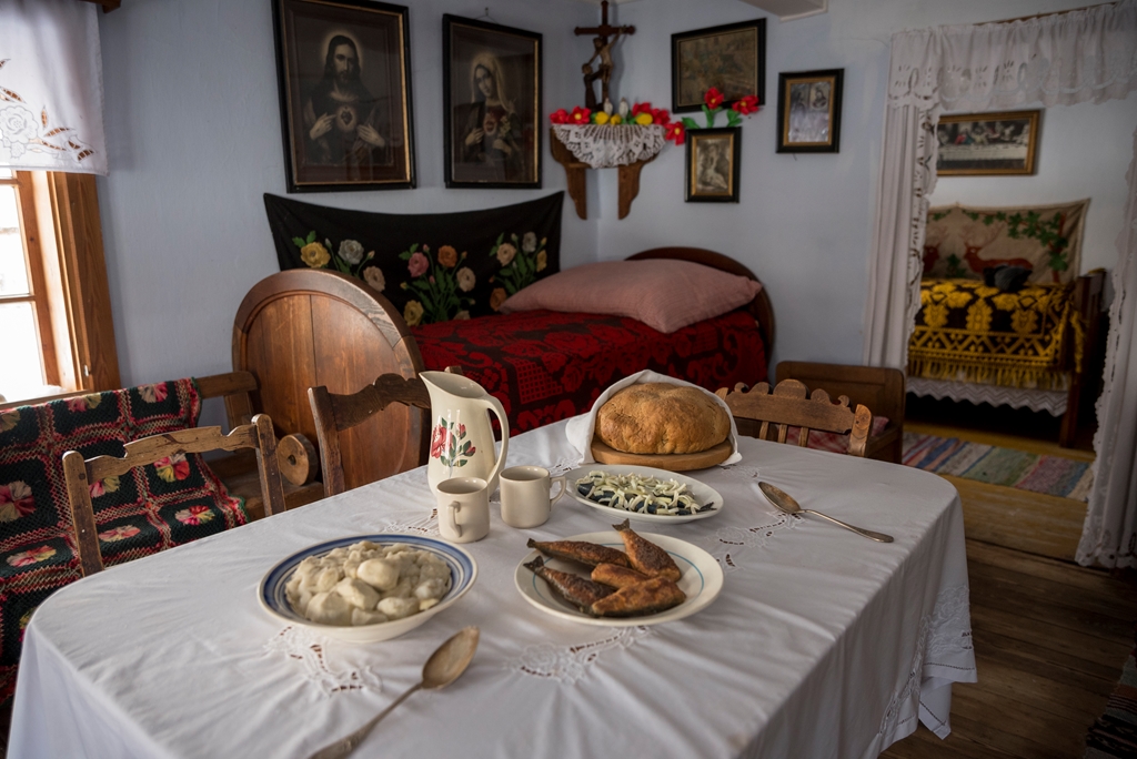 Wielki Post, był czasem przygotowania do najważniejszych świąt chrześcijańskich. Polegało to między innymi na powstrzymaniu się od pokarmów mięsnych, tłustych i słodkich. Czyli tych które królowały na stołach przez całe zapusty. Aby wyzbyć się nawet najmniejszej odrobiny tłuszczu, garnki starannie szorowano popiołem. Od tej pory aż do Wielkanocy, potrawy były kraszone wyłącznie olejem lnianym lub konopnym. Nie spożywano nabiału ani jajek. Na takie rarytasy mogły pozwolić sobie wyłącznie dzieci i to tylko te małe. Wstępna środa następuje, Pani matka żur gotuje. Żur, żurek, zalewajka - zupa jadana codziennie w czasie postu. Prosta i tania, przygotowana na bazie zakwasu chlebowego, podawana z ziemniakami. Równie często na stołach pojawiały się śledzie. Te z kolei, kupowano u obwoźnych handlarzy lub w niewielkich sklepikach. Wprost z drewnianych beczek, słone i najczęściej w całości. Jakże inne od tych które jadamy dzisiaj. Przed przyrządzeniem należało je porządnie wymoczyć w wodzie. Śledzie jedzono z posiekaną cebulą i olejem lnianym, do ziemniaków lub chleba.
