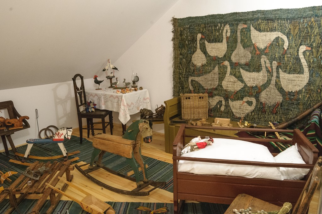 W drugiej sali znajdują się zabawki „spod wiejskiej strzechy”, czyli XX-wieczne zabawki ludowe: karuzele na patyku, „klepoki”, zabawki ze słomy i drewna, lalki z makówek, kozy prostyńskie, ceramiczne gwizdki, konie na biegunach i inne. Były kupowane na jarmarkach i targach z okazji rocznych świąt lub samodzielnie wykonane przez dziecko albo jego opiekunów.