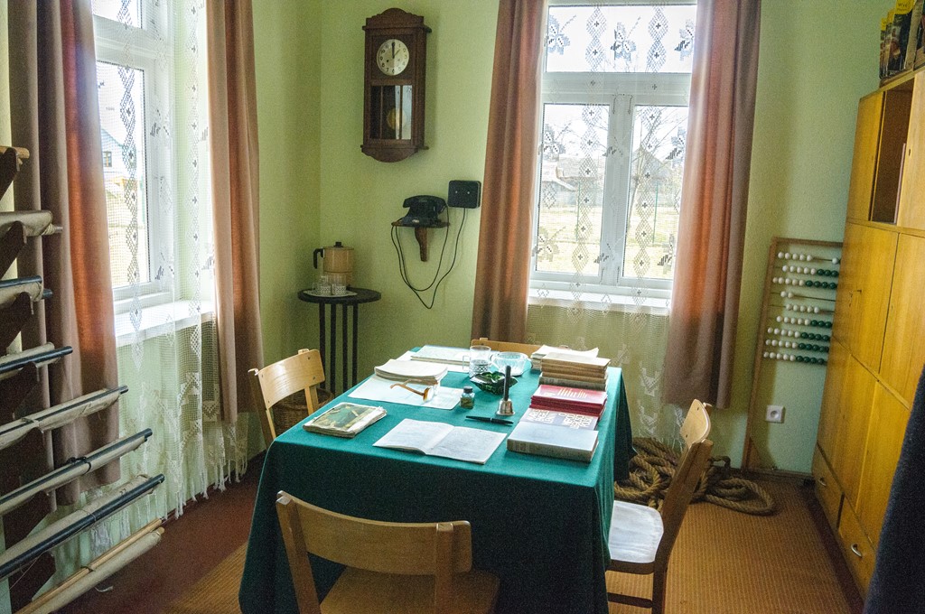 Dawny pokój nauczycielski oraz sala historyczna prezentująca pamiątki szkolne absolwentów i nauczycieli Szkoły Podstawowej w Winnie-Chrołach.
