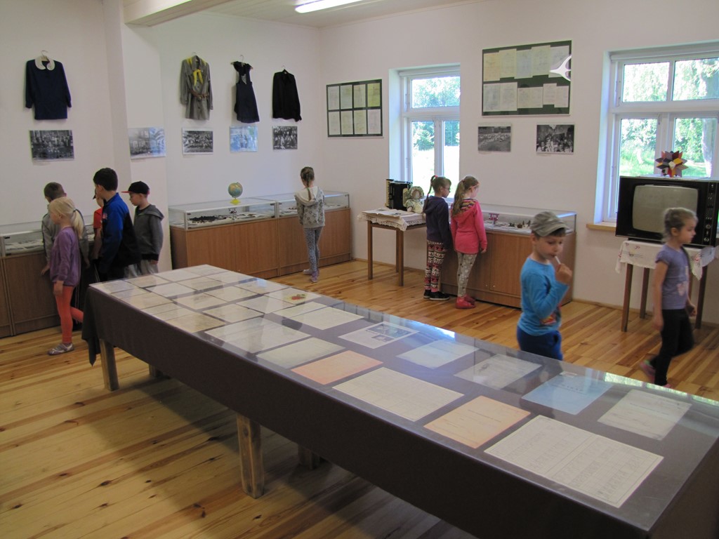 Wystawa zajmuje 130 m2 powierzchni poddasza budynku szkolnego wzniesionego w latach 30. ubiegłego wieku. Na parterze zaaranżowane zostały wnętrza szkolne z lat 30. i 70. XX w. nawiązujące do historii obiektu. Tuż za progiem mieści się sala lekcyjna z lat 30. XX w. z oślą ławką, kałamarzami z atramentem oraz tabliczkami do pisania. Obok znajdują się sale z lat 70. XX w.: pokój nauczycielski, mieszkanie nauczyciela, sala historyczna oraz klasa w pełni wyposażona w szkolne sprzęty zachowane „in situ” oraz pamiątki z lat szkolnych pozyskane od okolicznych mieszkańców (zeszyty, książki, tornistry, zdjęcia, pamiętniki i świadectwa).