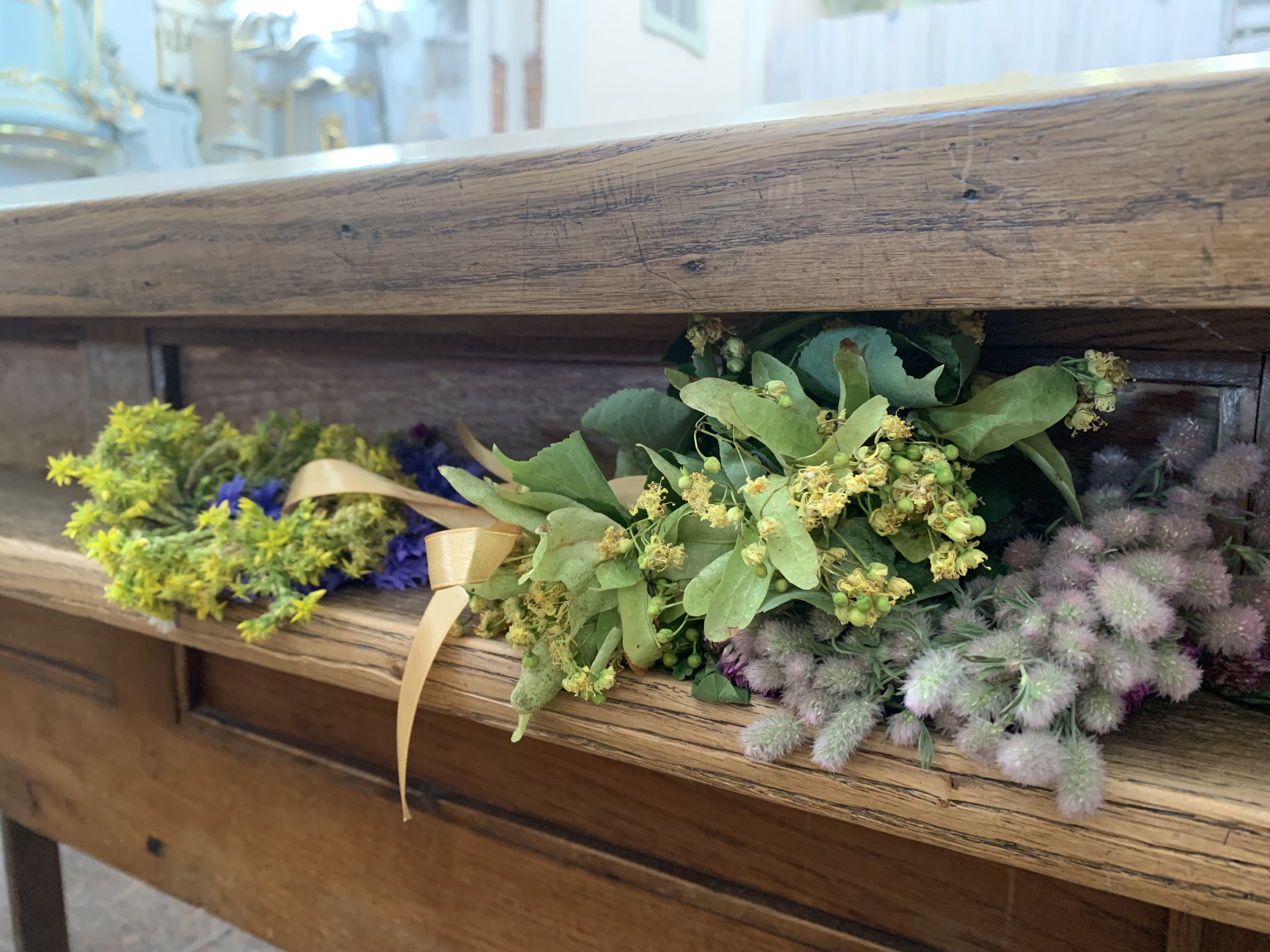 W miniony czwartek, wieczorową porą, w Kościele Trójcy Przenajświętszej w Ciechanowcu w powietrzu unosił się delikatny zapach macierzanki, mięty i lipy. Wiele pań – starszych, młodszych i tych całkiem malutkich, przygotowało wianki. Z potrzeby serca, dla tradycji, dlatego, że ich matki i babki tak robiły. Serdecznie dziękuję wszystkim Paniom, które opowiadały mi o tradycji zaplatania i święcenia wianków oraz wyraziły zgodę na ich sfotografowanie. Na zdjęciach widać, że wianuszki są w większości nadal wyplatane z tych samych roślin co dawniej. „Te tradycyjne stare zioła są najlepsze”, powiedziała mi jedna z Pań. I może tylko czasami niestety troszkę trudniej je odnaleźć.