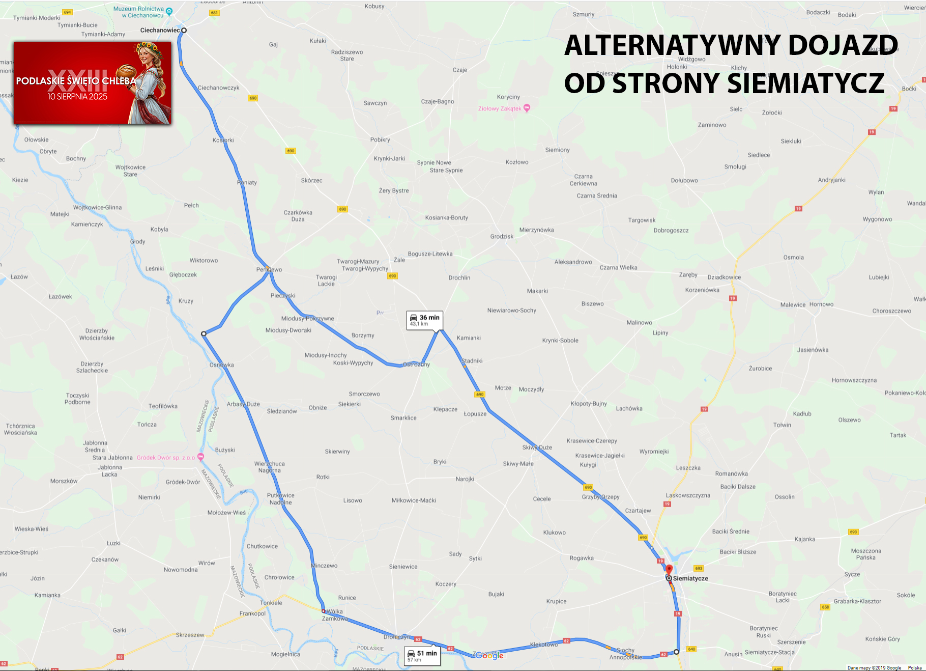 XXIII Podlaskie Święto Chleba 2025 - plan sytuacyjny wydarzenia i dojazdy do Ciechanowca