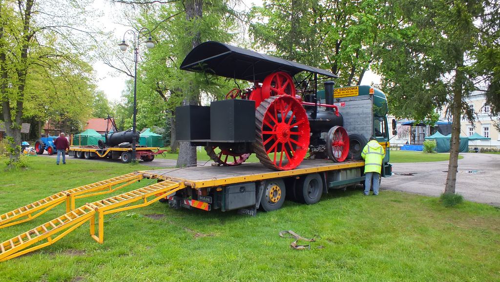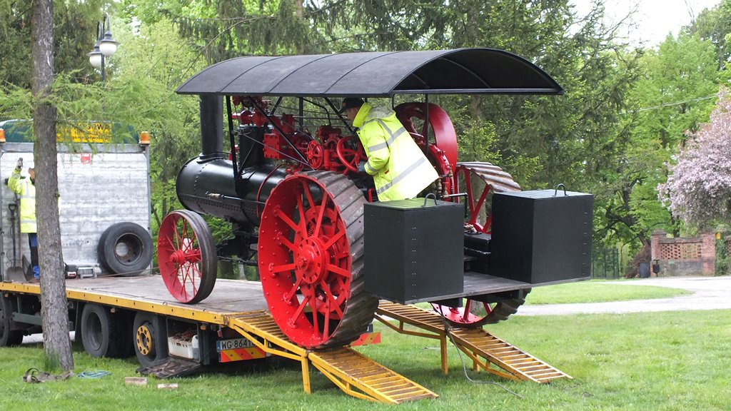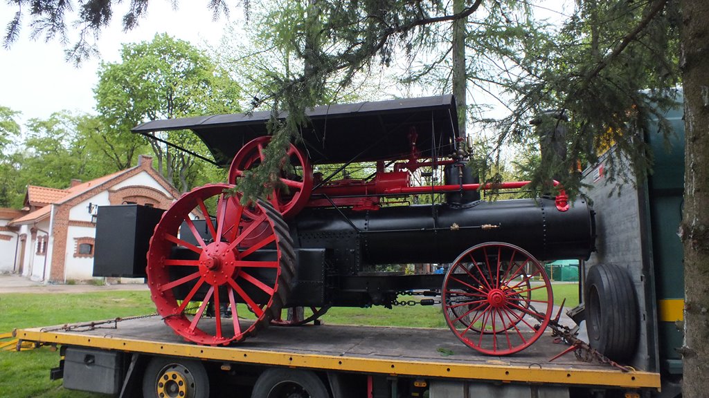 11 maja br. - w poniedziałek - przyjechały do Muzeum Rolnictwa w Ciechanowcu dwa bardzo cenne eksponaty - jedyna w Polsce samobieżna lokomobila parowa Frick Eclipse oraz wyjątkowy ciągnik Lanz Bulldog HR8.