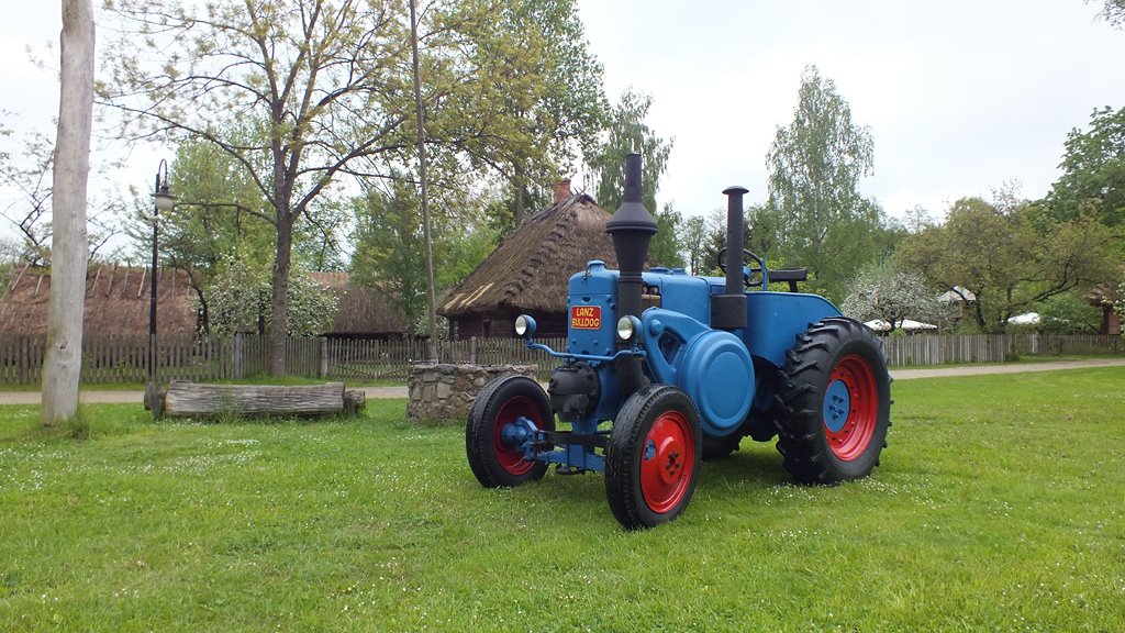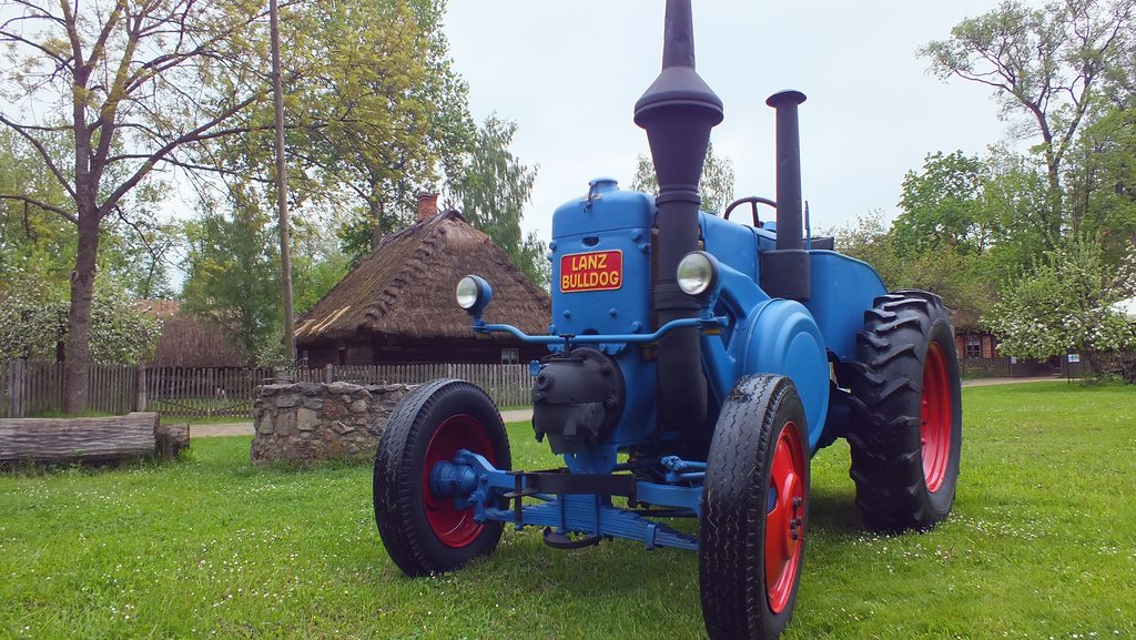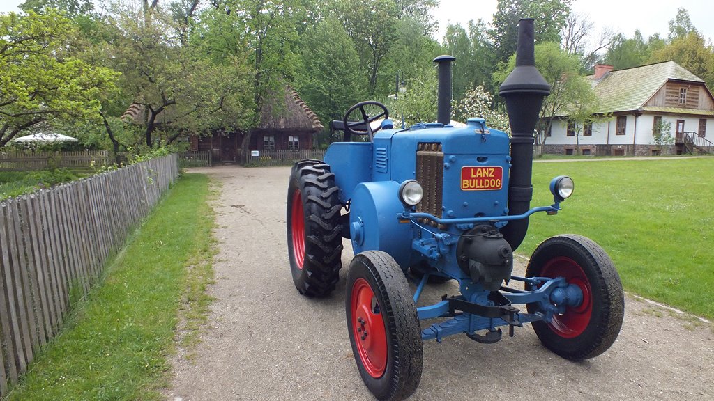 Drugim eksponatem, niezwykle ważnym dla rozwoju polskiej myśli technicznej, jest ciągnik Lanz Bulldog HR8 z 1940 r. Podkreślić należy, że po II wojnie światowej właśnie ten model ciągnika Lanz posłużył polskim konstruktorom z Zakładów Mechanicznych "Ursus" w Ursusie do budowy pierwszego, polskiego ciągnika Ursus C-45, którego wstępną produkcję uruchomiono w marcu 1947 r. Ciągnik Lanz Bulldog HR8 został wyprodukowany w niemieckiej firmie "Heinrich Lanz AG" w Mannheim. Wyposażony jest w leżący, dwusuwowy silnik średnioprężny o pojemności 10,3 l i mocy aż 45 KM. Jego silnik współpracuje z 8-stopniową skrzynią biegów. Posiada 6 prędkości do przodu i 2 do tyłu. Ciągnik może rozwinąć prędkość do 17 km/h. Produkcja tego modelu trwała w Niemczech w latach 1935 - 1944.