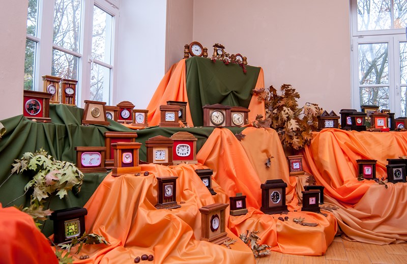 Na wystawie w ciechanowieckim muzeum można podziwiać ponad 300 różnorodnych zegarów w jesiennej, nostalgicznej aranżacji. Są prezentowane klasyczne, ociekające złotem i srebrem zegary stylizowane na kominkowe antyki i współczesne, kolorowe wariacje, za razem proste i eleganckie w formie. Są też zegary wykonane z balsy - drewna lżejszego od korka, które przybrały kształt wieży Eiffla, czy figur geometrycznych. Wiele zegarów upamiętnia różne wydarzenia z życia autora lub miejsca, które odwiedzał.