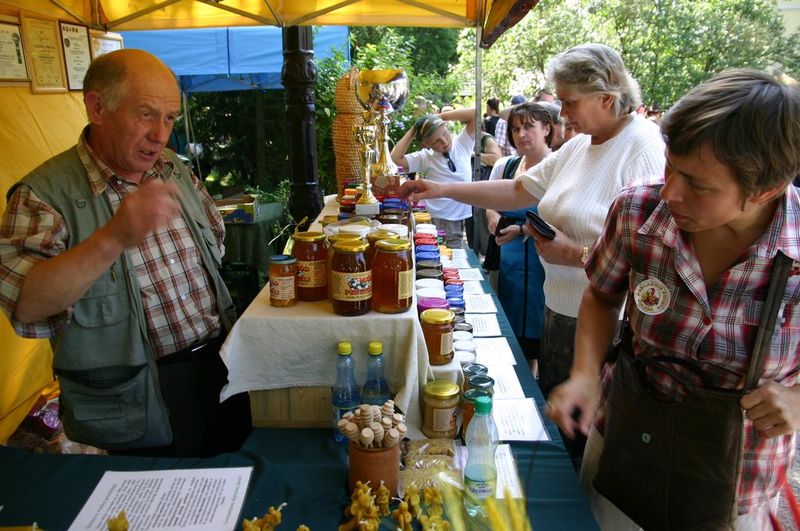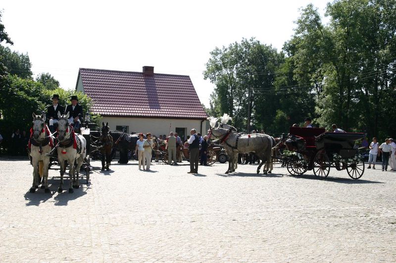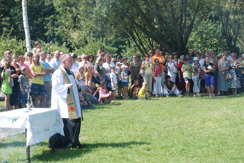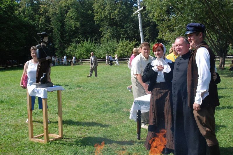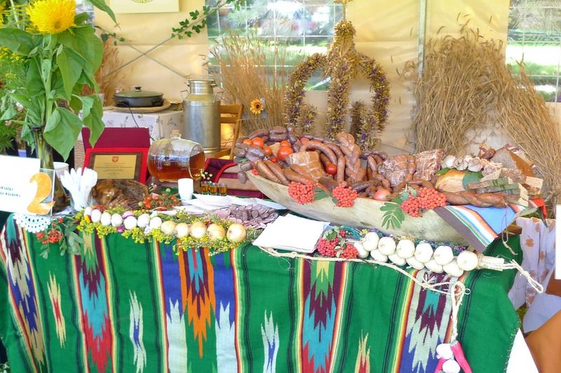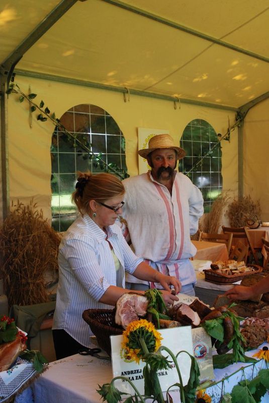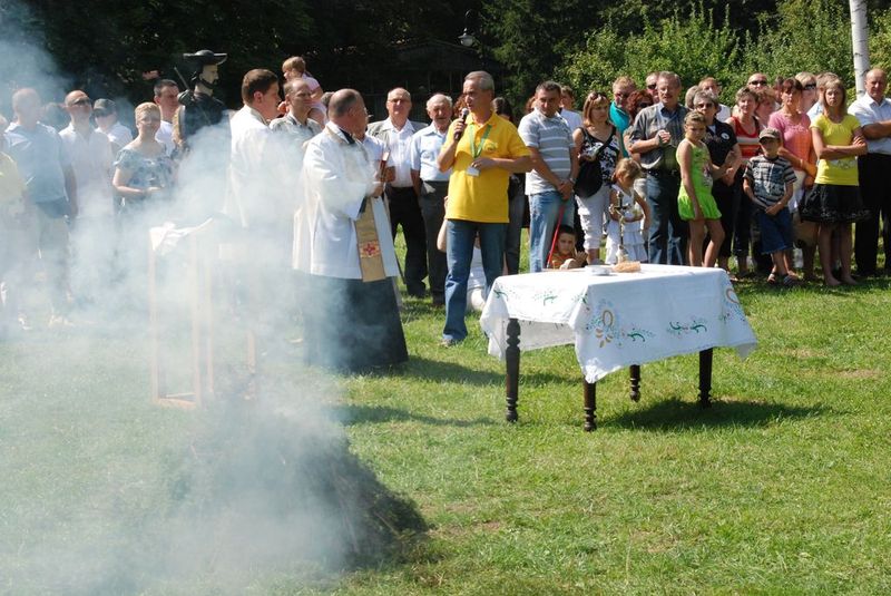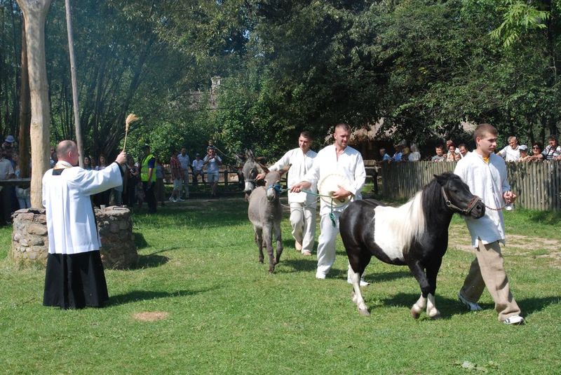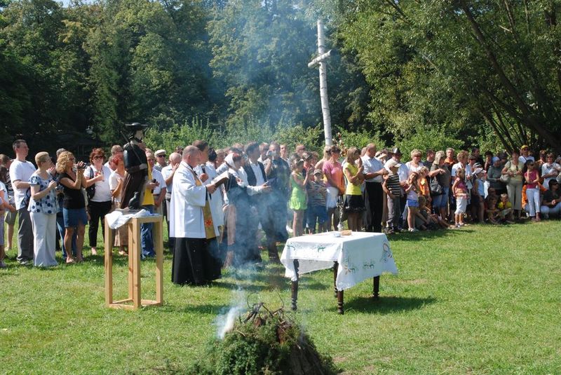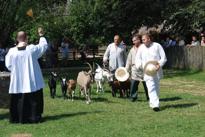 Obok stoisk z jadłem regionalnym na terenie skansenu na wygonie przy studni odbył się pokaz Święcenia Zwierząt. Modlitwę odmówił i dokonał pokropienia zwierząt przechodzących w dymie z płonącego ogniska Proboszcz Parafii pw. Matki Bożej z Fatimy ks. Grzegorz Śniadach.