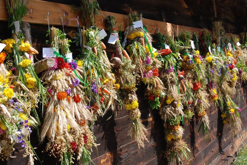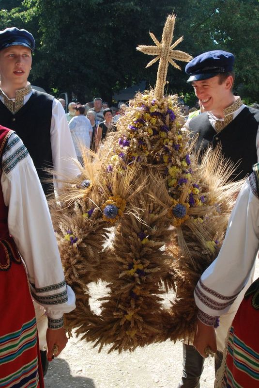 Obecne wieńce, często płaskie, z obrazkami świętymi, w kształcie świątyń, wysypane nasionami lnu, ryżu, czy kukurydzy albo też w kształcie łodzi z dynią, papryką i winogronem nie mają nic wspólnego z polską tradycją wieńców dożynkowych.