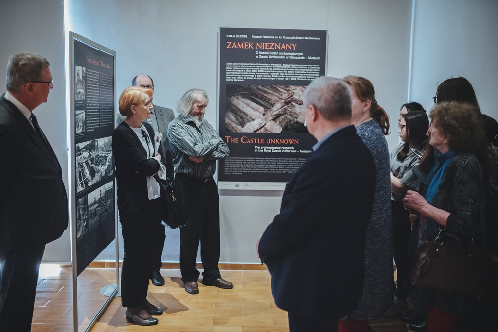 Zespół Działu Archeologii Zamku Królewskiego w Warszawie – Muzeum pragnie zaprezentować wystawę poświęconą efektom prac wykopaliskowych i architektonicznych, jakie prowadzono w Zamku już od okresu międzywojennego. Pierwszych odkryć – pozostałości rezydencji książąt mazowieckich, zwanej w źródłach Curia Maior, czyli Domem Wielkim – dokonał już w latach 1921-1926 zespół konserwatorów kierowany przez kuratora zamku Kazimierza Skórewicza. Wówczas to w południowo-wschodnim skrzydle, od strony dziedzińca odsłonięto spod późniejszych tynków i wyeksponowano gotycką elewację siedziby książęcej. Na niewielką skalę prace archeologiczne prowadzono także w 2. połowie lat 30. Na obszarze tak zwanego ogródka trójkątnego, pomiędzy skrzydłem południowo-wschodnim a Biblioteką Królewską, odkryto kilka pochówków, jak dziś sądzimy, żołnierzy szwedzkich z okresu oblężenia Warszawy przez wojska Karola Gustawa w 1656 r.