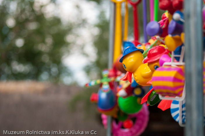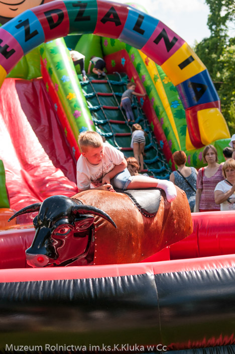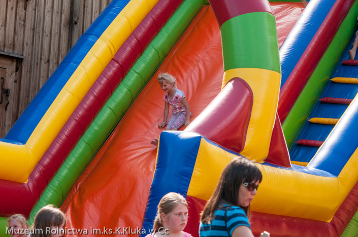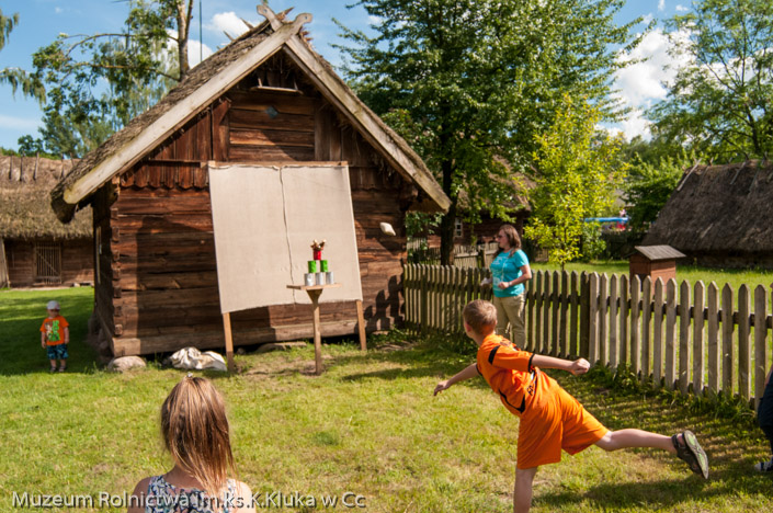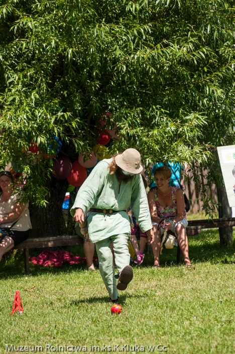 Zagroda drobnoszlachecka stała się areną zmagań dorosłych i dzieci w dyscyplinach wymagających szybkości, zręczności i sprytu. Najmłodsi z pomocą rodziców konkurowali we wrzucaniu kolorowych kółeczek na pal, a starsi ścigali się w lnianych workach lub skakali na skakance lub grali w gumę. Ogromnym powodzeniem cieszyła się piramida kolorowych puszek, które strącane były przez rzut woreczkami z grochem. Najprostsza konkurencja - przeciąganie liny gromadziła do zabawy całe rodziny. Każda osoba biorąca udział w zabawach otrzymała nagrodę. Wśród tradycyjnych zabaw nie mogło zabraknąć toczenia fajerki. Dla wielu dorosłych okazało się to nie lada wyzwaniem, ale dając ponieść się wspomnieniom z dzieciństwa i zabawie bawili się przy tym równie dobrze, jak dzieci.