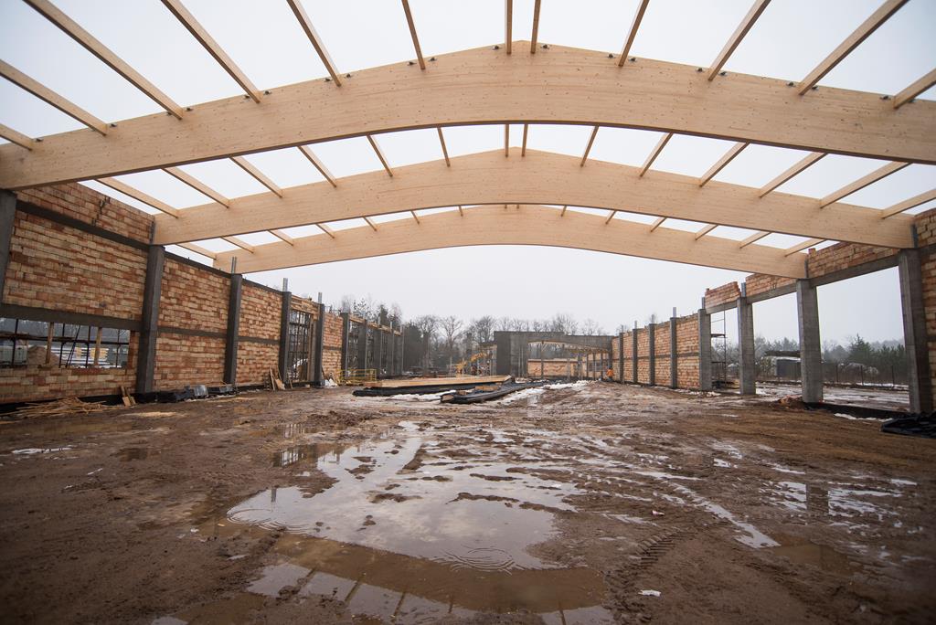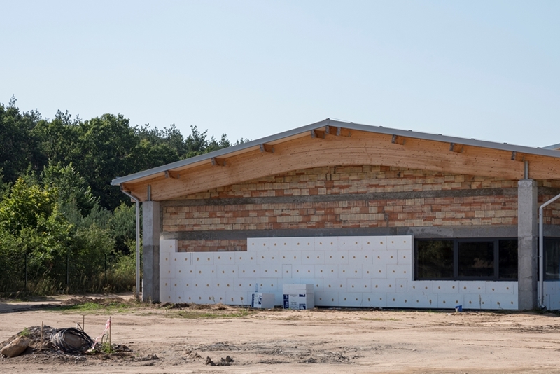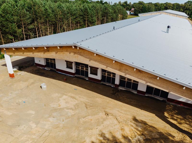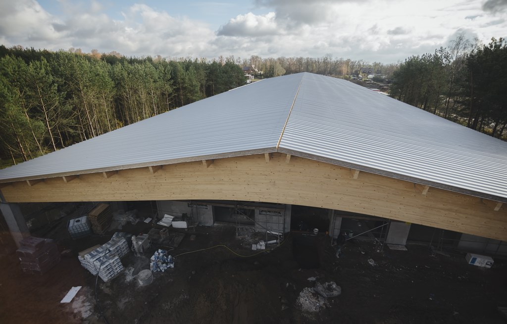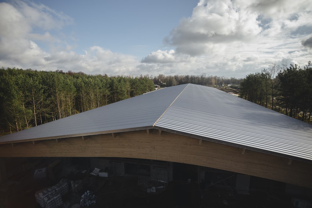 • wykonania konstrukcji dachu oraz jego pokrycie płytą warstwową
