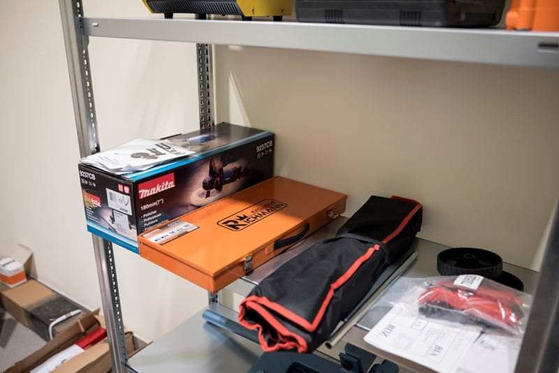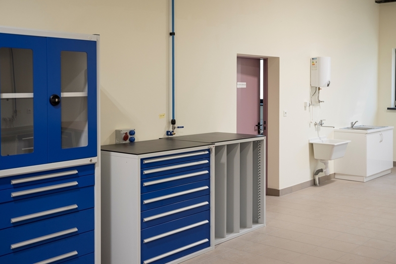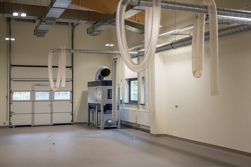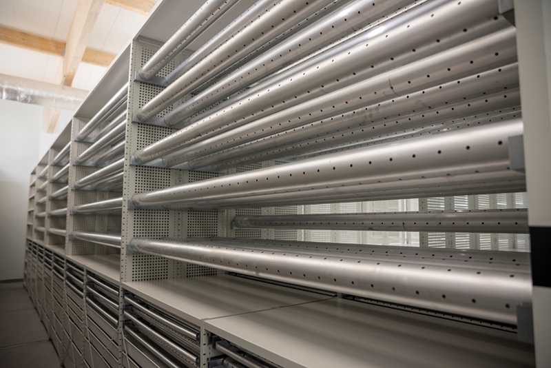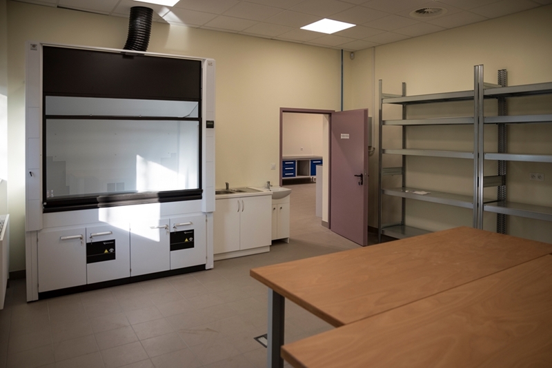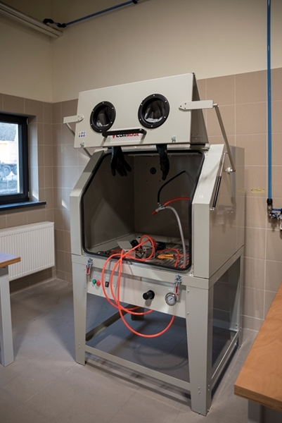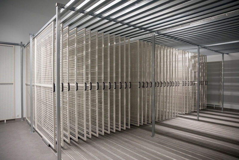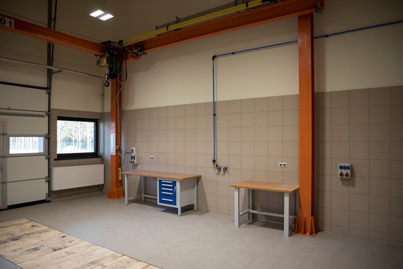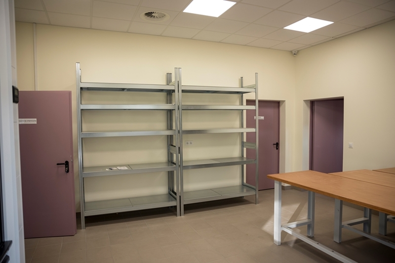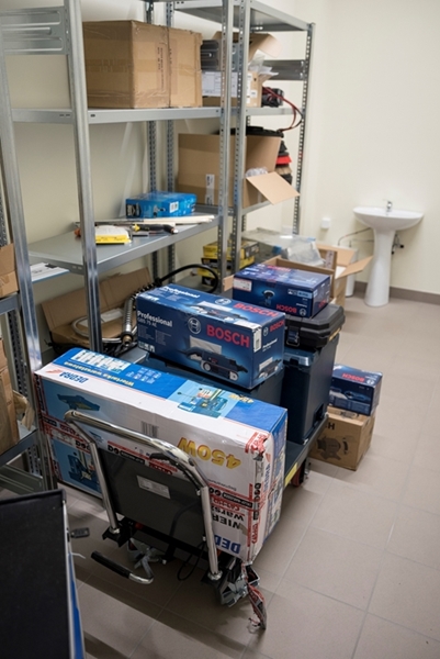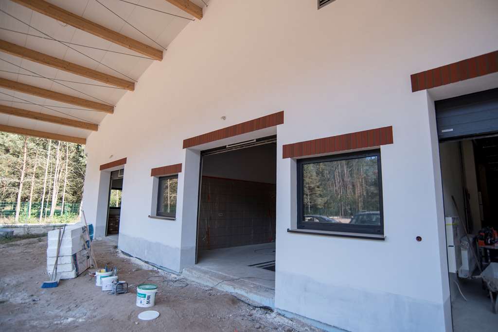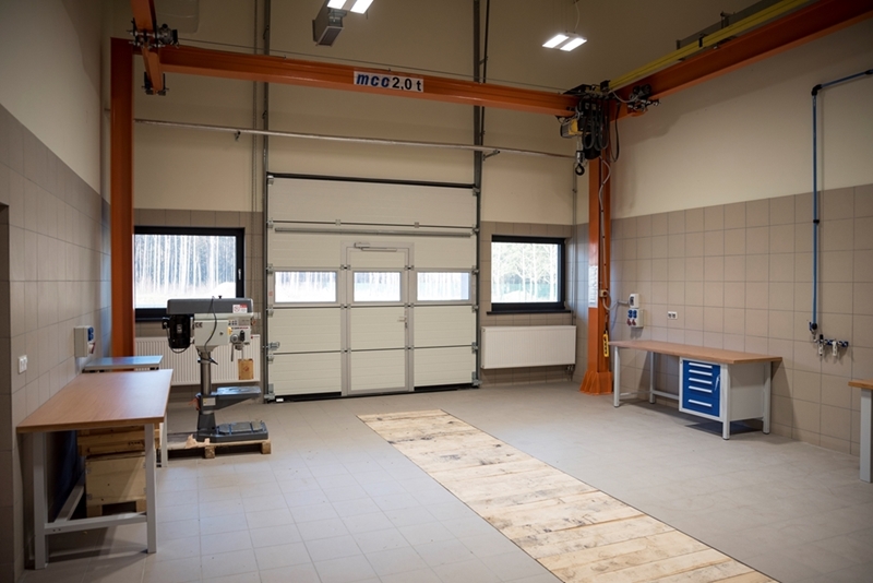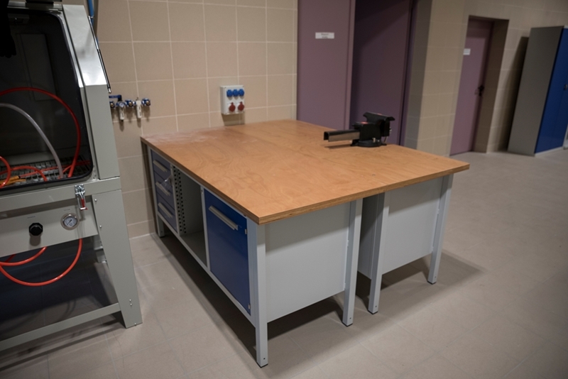 Realizacja zadania obejmuje również zakup do pracowni i magazynów mebli biurowych oraz zestawów komputerowych z oprogramowaniem. Do pracowni digitalizacji zbiorów zostanie zakupiony sprzęt fotograficzny i komputerowy wraz ze sprzętem uzupełniającym m.in. oświetleniem studyjnym i plenerowym, reflektorami, statywami, stojakami oraz obiektywami i lampami błyskowymi. Pracownie techniczne wyposażone będą w sprzęt typu: wiertarka, czopiarka, frezarka, szlifierka taśmowa, pilarka tarczowa, tokarka do drewna, spawarka, sprężarka, piaskarka, strugarka czterostronna, digestorium, myjka ciśnieniowa. W pomieszczeniach magazynowych zainstalowane zostaną nowoczesne, przesuwne i sterowane elektronicznie zestawy regałów o profilu dostosowanym do charakteru poszczególnych magazynów. Dla potrzeb pracowników zostaną zakupione stoły, krzesła oraz szafy ubraniowe. Zakupione również zostaną akumulatorowe wózki podnośnikowe oraz zewnętrzny silos do magazynowania wiórów i trocin. W ramach zadania zostanie wykonane ogrodzenie nowopowstałej infrastruktury.