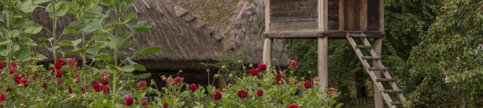 Rekonstrukcja nieistniejącego już obiektu małej architektury, na podstawie szkicu zamieszczonego w IV tomie "Encyklopedii Staropolskiej" Zygmunta Glogera pt. "Stary sernik we wsi Zlotoryi nad Narwią (rozebrany w roku 1856)". Sernik nazywany również sernicą lub lesicą, znajdował się dawniej przy każdym dworku i służył do suszenia serów i gomółek. Sernica w rzucie poziomym tworzy kwadrat. Posadowiona jest na czterech dębowych słupach wkopanych w ziemię, górą spiętych belkami, tworzącymi podwaliny obiektu. Na podwalinach zbudowano zrąb sosnowy konstrukcji sumikowo-łątkowej, którą przykrywa brogowy dach. Pokryty łupaną dranką osikową, w kalenicy zdobiony pazdurem. Rzut poziomy więźby tworzy "piątnicę", która stała się motywem rozstawu otworów wentylacyjnych. Obiekt jest orientowany wejściem w stronę południową, którego drzwi zdobi "piątnica" tworząca krzyż, wskazując cztery strony świata.