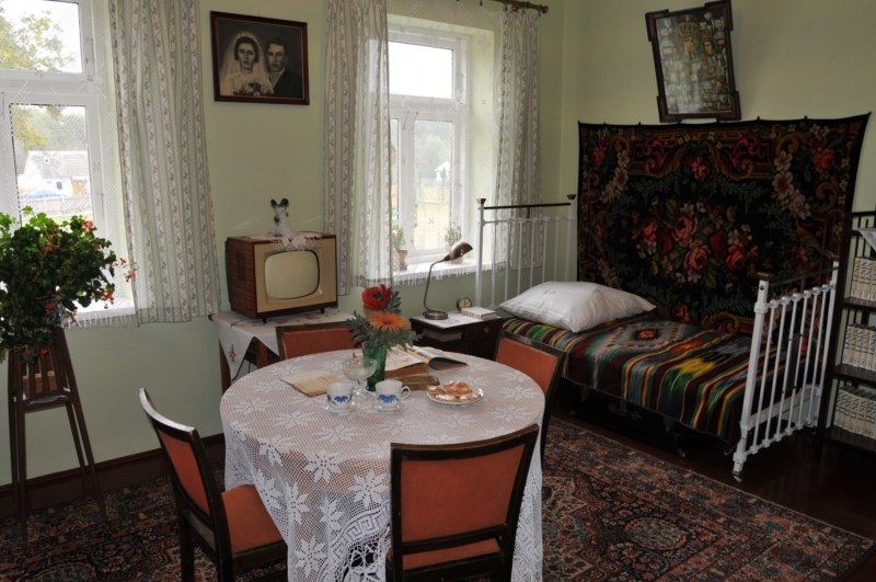 W sali szkolnej z lat 30-tych XX w. drewniane tornistry, ławki z wpuszczonymi kałamarzami, ośla ławka, dyscyplina skórzana i woreczki z grochem do klęczenia. W klasie z lat 60-tych XX w. oryginalne zeszyty szkolne z początku lat 70-tych XX w., zestawy pomocy naukowych. W obu salach są manekiny nauczycieli i dzieci ubrane w oryginale stroje stosowne do epoki. W sali historycznej oprócz fotografii z lat 30-tych, 50-tych, 70-tych, 80-tych i 90-tych XX w. na uwagę zasługują oryginalne dzienniki szkolne ze Szkoły Podstawowej w Winnie Chroły z lat 20-tych i 30-tych XX w., rozkład zajeć z roku szkolnego 1939/40 z poprawkami naniesionymi przez sowieckie władze oświatowe po zajęciu tych terenów po agresji ZSRR po 17 września 1939 roku. Na korytarzu prezentowane są oryginalne dyplomy ze Szkoły Podstawowej w Winnie Chroły z lat 60-tych, 70-tych, 80-tych, 90-tych XX wieku. W mieszkaniu nauczyciela jest m.in. telewizor z lat 60-tych, żelazne łóżko, a nad nim obraz Matki Boskiej Hodyszewskiej, dalej kącik higieniczny z parawanem oraz etażerka z kompletem dzieł Lenina. W pokoju nauczycielskim jest m.in. oryginalny dziennik zajęć pozalekcyjnych z 1972 roku oraz czarny ebonitowy telefon na korbkę. Pomieszczenia zostały starannie zaaranżowane i wyposażone w odpowiednie dla danych okresów sprzęty szkolne.