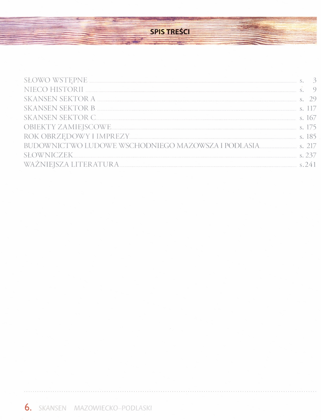 Publikacja przedstawia część Muzeum Rolnictwa im. ks. Krzysztofa Kluka jakim jest Skansen Mazowiecko-Podlaski. W publikacji znajdziemy opisy translokowanych na teren muzeum budynków drewnianych oraz obiektów małej architektury. Jako uzupełnienie przedstawiono zdjęcia i ryciny przedstawiające eksponaty prezentowane na ekspozycjach. Książka zawiera liczne fotografie dokumentujące wydarzenia o charakterze etnograficznym organizowane przez cały rok na terenie muzeum oraz fotografie archiwalne.