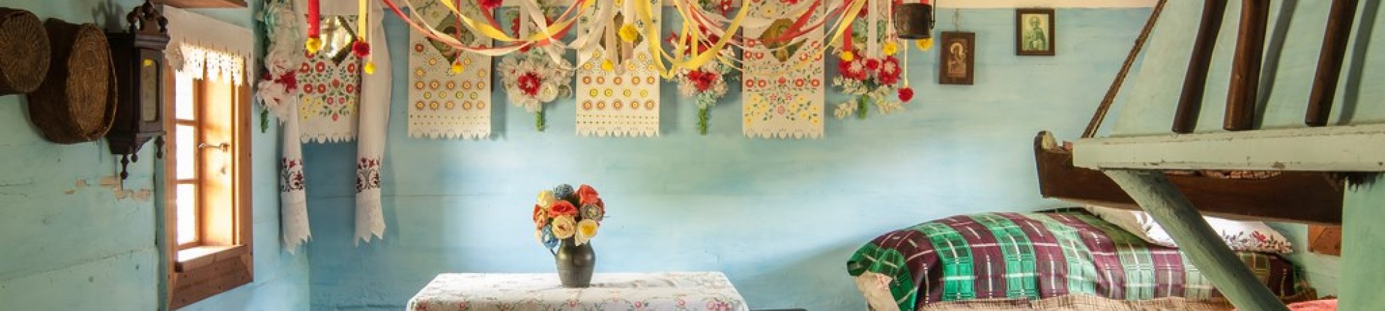 Zbudowana w drugiej połowie XIX w. Budynek konstrukcji wieńcowej wzniesiony na planie prostokąta o wymiarach 15,5 x 4,5 m. Dach półszczytowy, pokryty słomą, z charakterystycznym dla dziewiętnastowiecznych chałup białoruskich półszczytem od strony ulicy. W izbie odtworzono dziewiętnastowieczne urządzenia ogniowe, jakie istniały w chałupie do lat trzydziestych XX w. W ich skład wchodzi piec piekarski, poprzedzony wąskim przypieckiem nakrytym kapturem do odprowadzania dymu i pary oraz dymnik wymurowany powyżej pułapu. Ekspozycja wnętrza prezentuje mieszkanie średniozamożnej rodziny wielopokoleniowej, a została wykonana w oparciu o zbiory etnograficzne Białoruskiego Towarzystwa Społeczno-Kulturalnego.
