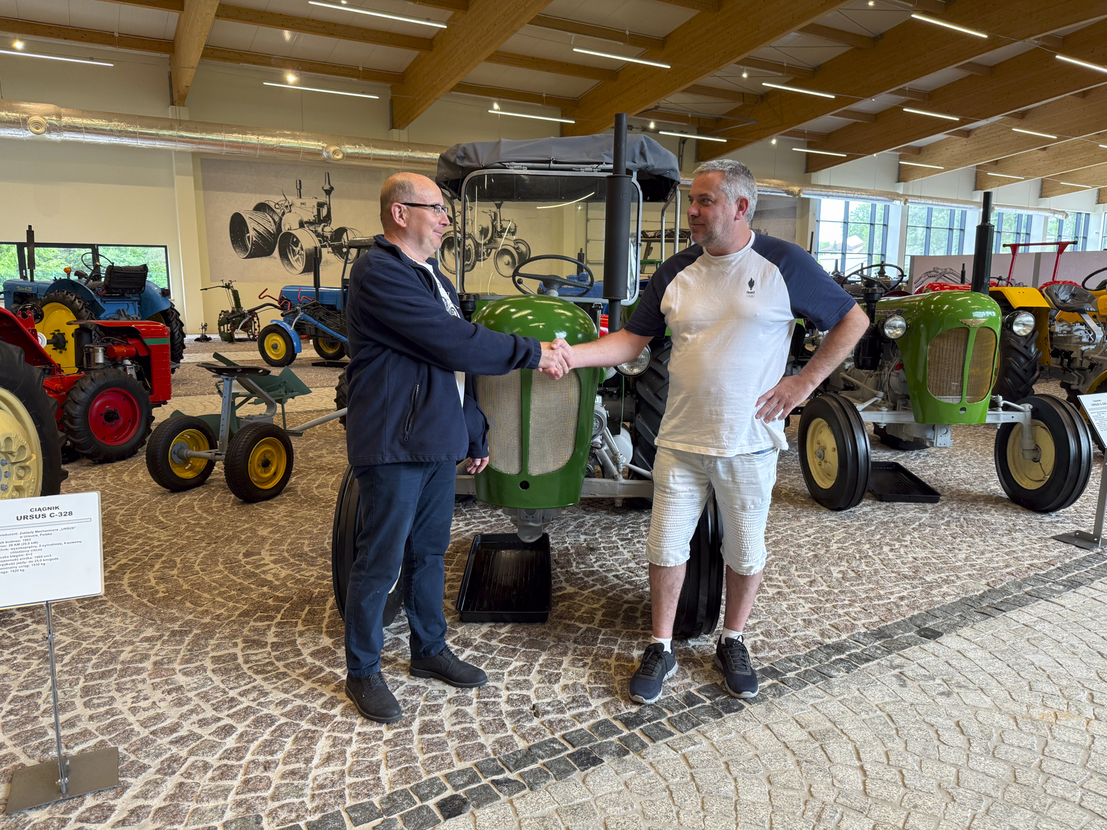 17 czerwca 2025 r. odbyła się trzecia i zarazem ostatnia sesja dotycząca skanowania naszych zabytkowych ciągników przez wydawnictwo Hachette Polska, z którym 18 lutego br. podpisaliśmy umowę o współpracy. Wydawnictwo Hachette Polska od początku tego roku wprowadza na polskojęzyczny rynek kolekcję „KULTOWE TRAKTORY”. Każdy numer kolekcji poświęcony jest historii oraz aspektom technicznym konkretnego modelu ciągnika, a dodatkowe rozdziały wprowadzają w świat historii rolnictwa – jego rozwoju, fabryk i przemysłu rolniczego. Do każdego zeszytu dołączony jest miniaturowy model ciągnika wykonany w skali 1:43. Dotychczas ukazało się już 13 numerów spośród 60 zaplanowanych do wydania zeszytów. Wydawnictwo Hachette Polska we współpracy z naszą instytucją, zaplanowało, że 17 miniatur ciągników zostanie wykonanych na podstawie traktorów znajdujących się w zbiorach Muzeum Rolnictwa w Ciechanowcu. Jest to dla nas ogromne wyróżnienie, a także duża promocja naszej wyjątkowej kolekcji. Na razie nie zdradzimy, które ciągniki zostały wytypowane do skanowania. Natomiast na bieżąco będziemy informować Państwa, gdy tylko zaczną pojawiać się one w kolejnych numerach.