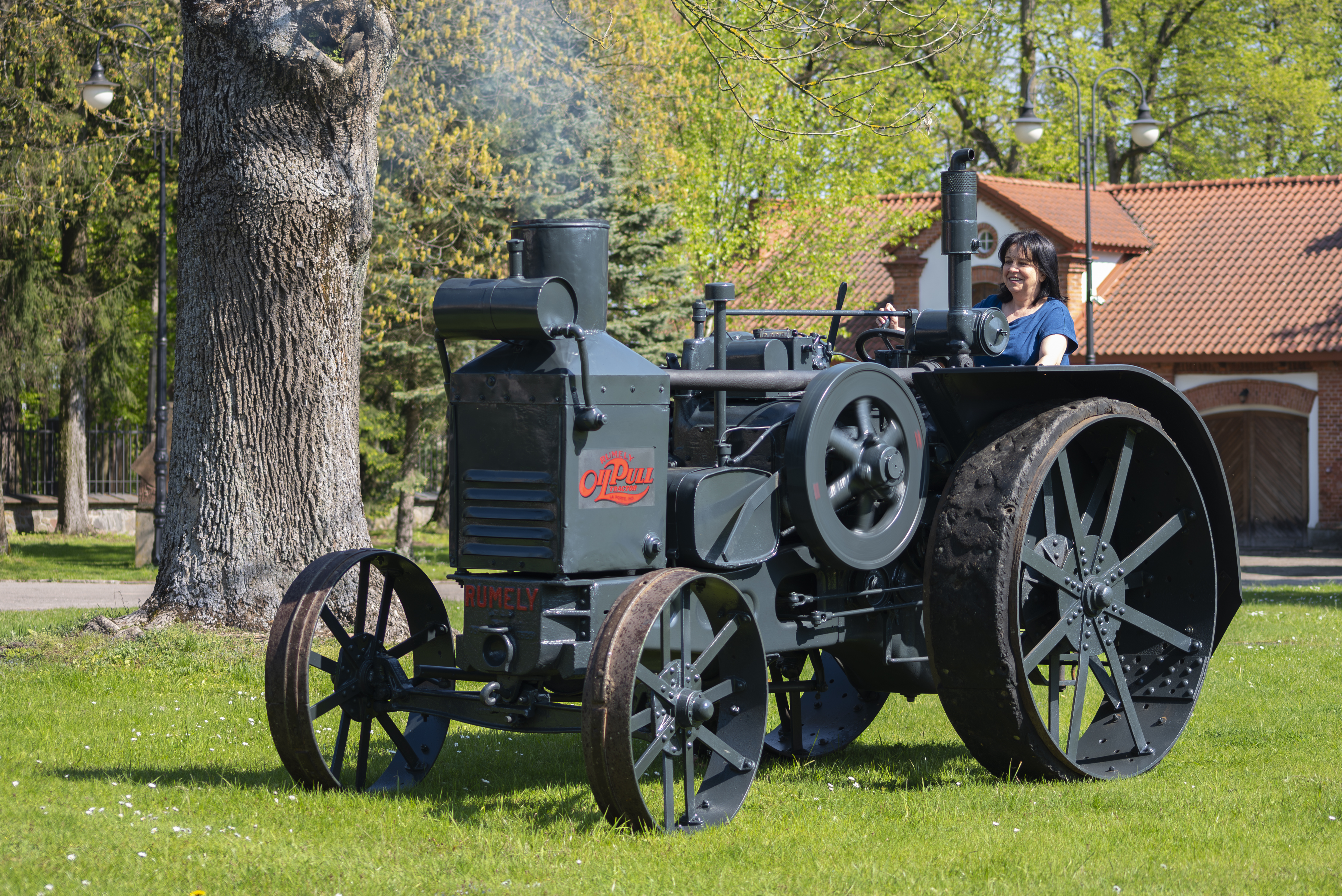 Firma Advance-Rumely została założona w La Porte w 1853 r. przez Meinarda Rumely i jego brata Jana, którzy przyjechali kilka lat wcześniej do Stanów Zjednoczonych z Niemiec. Początkowo działała jako kuźnia i zajmowała się naprawą maszyn i narzędzi rolniczych. Następnie zajęła się produkcją przede wszystkim maszyn młócących, kieratów, silników i lokomobil parowych, a w dalszej kolejności silników spalinowych i ciągników. Produkcja ciągników spalinowych była marzeniem Edwarda Rumely - wnuka Meinarda Rumely, który w 1908 r. przekonał inżyniera Johna Secora do zaprojektowania ciągnika Rumely. Pierwszy egzemplarz Rumely Oil-Pull był testowany już 1909 r. Ciągnik ten stał się znany jako Naftowa Annie ze względu na zdolność do spalania nafty i przetrwał do dnia dzisiejszego w jednym z amerykańskich muzeów. Produkcja ciągników Rumely rozpoczęła się na dobre w 1910 r. Produkcję seryjną Naftowej Annie nazwano modelem B 25-45, który okazał się bardzo udany, zarówno w USA, jak i za granicą. W następnych latach firma Rumely wprowadzała na rynek kolejne modele swoich traktorów, oparte konstrukcyjnie na modyfikowanym pod względem mocy silniku Naftowej Annie. Poszczególnym modelom nadawano w nazwie kolejne litery alfabetu oraz moc wyrażoną liczbą koni mechanicznych. W ten sposób firma do końca swej działalności wypuściła na rynek 14 modeli ciągnika Rumely Oil-Pull oznaczonych literami: B, E, F, G, H, K, L, M, R, S, W, X, Y, Z. Dzięki traktorom z silnikami na naftę z domieszką wody firma Advance-Rumely odniosła sukces na początku XX w. W sumie wyprodukowała 58 435 egzemplarzy wszystkich modeli. Swoje wyroby eksportowała na cały świat. Poprzez nieustanny rozwój stała się jedną z większych firm w USA, produkujących na potrzeby przemysłu i rolnictwa. Rozwijając się wykupiła kilka innych amerykańskich przedsiębiorstw, m.in. w 1911 r. firmę Advance Thresher Company. Stąd w nazwie rodzinnej firmy Rumely pojawił się człon Advance. W dłuższej perspektywie nie poradziła sobie jednak na amerykańskim rynku z tańszą konkurencją. W 1931 r. Advance-Rumely została przejęta przez amerykańską firmę „Allis Chalmers” i w ten sposób marka Rumely przeszła do historii. Jej drobną cząstkę można zobaczyć w naszym muzeum. A klikając w załączony link https://www.youtube.com/watch?v=z9VQDyPBuVs zobaczyć pierwszą jazdę naszym ciągnikiem Rumely Oil-Pull X 25-40 po przybyciu do muzeum w maju 2017 r.