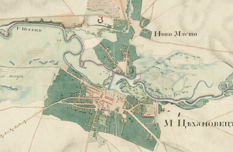 2. Ciechanowiec w 1828 r., Źródło: AGAD, Zbiór kartograficzny, sygn. 92-14