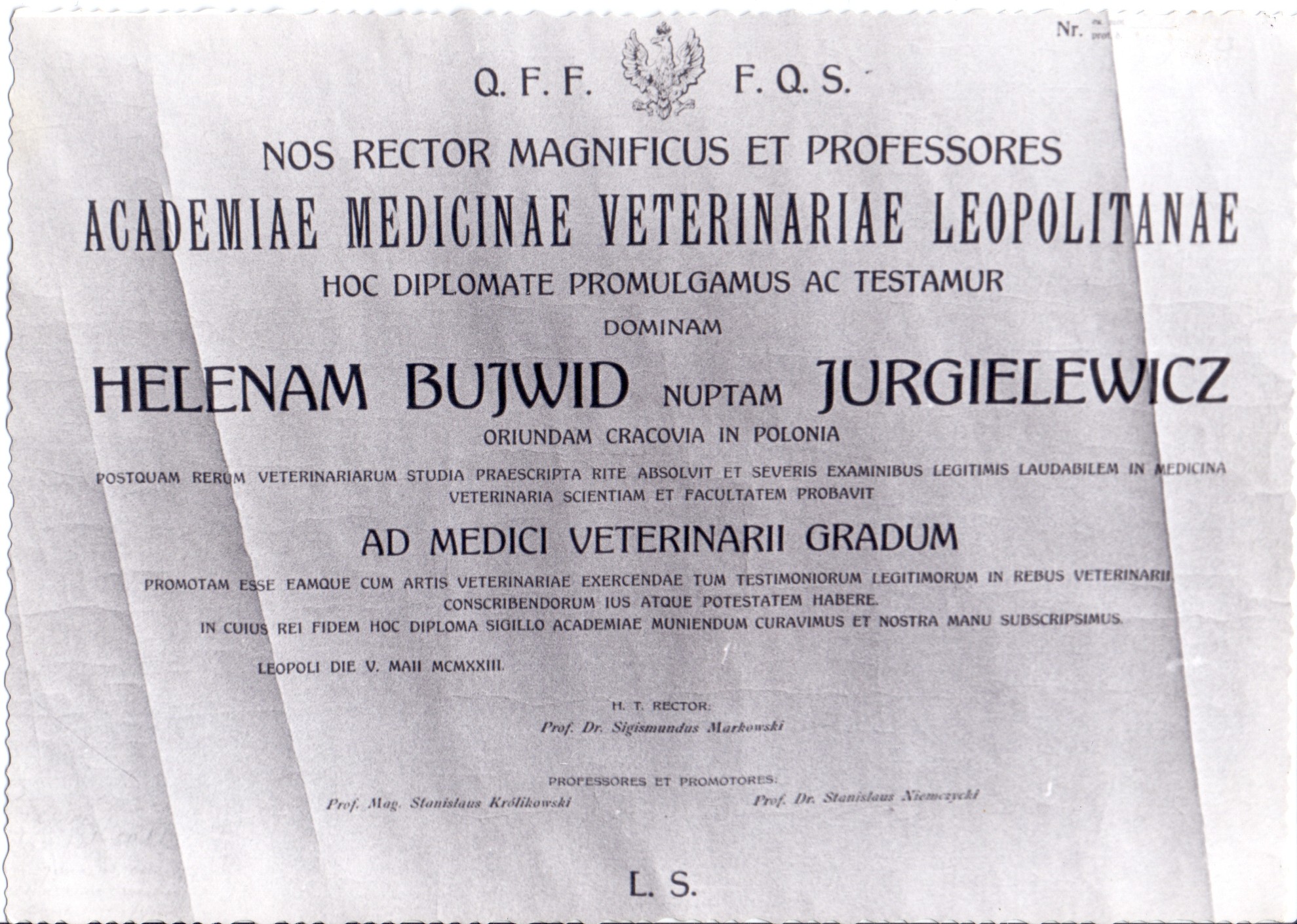 Helena Jurgielewiczowa (córka znanego cenionego naukowca - Odo Bujwida oraz Kazimiery Bujwidowej z Klimontowiczów - jednej z najważniejszych postaci ruchu feministycznego pierwszej fali w Polsce) zapisała się w historii Polski jako postać wyjątkowa – pionierka nauk weterynaryjnych i kobieta czynu, która z odwagą łączyła służbę nauce z realnym zaangażowaniem w sprawy niepodległościowe. Jako pierwsza Polka, która uzyskała dyplom lekarza weterynarii, przełamała bariery obyczajowe i instytucjonalne epoki, w której kobietom odmawiano prawa do pełnego wykształcenia akademickiego w wielu dziedzinach.