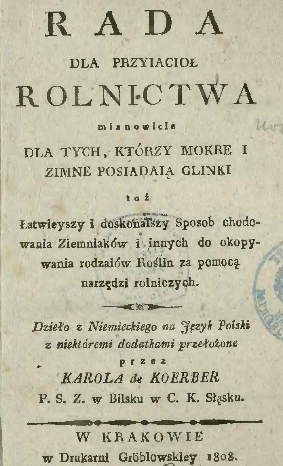 Kończąc artykuł trzeba zaznaczyć, że zawarte w nim wiadomości oparto jedynie na kilku poradnikach rolniczych z epoki. Oprócz nich na ówczesnym rynku wydawniczym ukazywało się wiele innych tytułów, często będących przekładami publikacji obcojęzycznych na język polski. Dlatego poniżej zamieszczamy wskazówki dotyczące uprawy ziemniaków z jednej z przetłumaczonych prac wydanej w 1808 r.