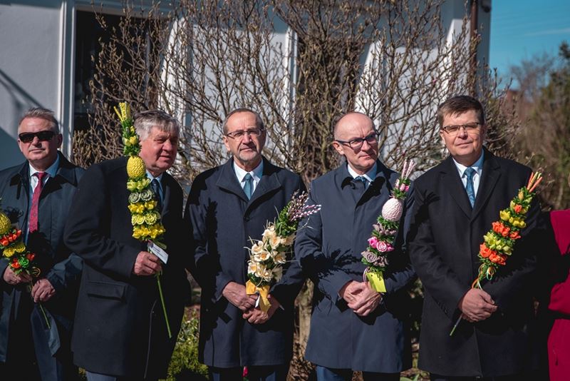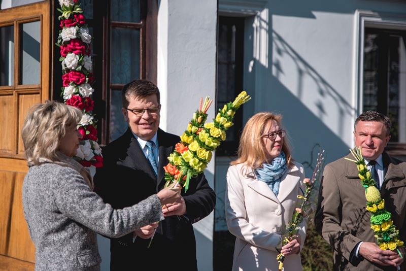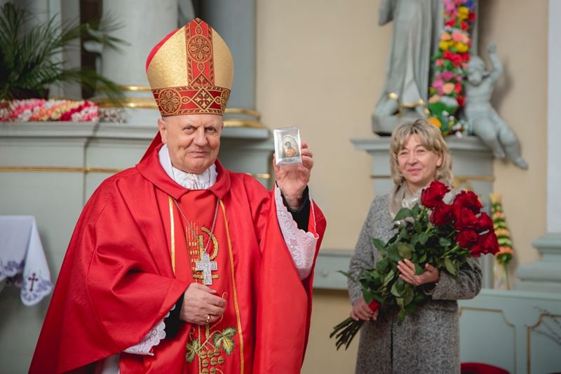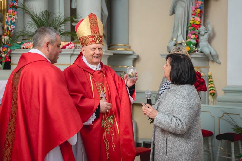 Na zakończenie Mszy Świętej Dyrektor Muzeum Rolnictwa Dorota Łapiak oraz Zastępca Dyrektora Anna Wiśniewska dziękując za wieloletni patronat duchowy nad Konkursem złożyły na ręce Księdza Biskupa Tadeusza Pikusa pisankę z kopią obrazu Brata Alberta Chmielowskiego „Ecce Homo”, wykonaną przez Pana Wojciecha Boguckiego z Ciechanowca.