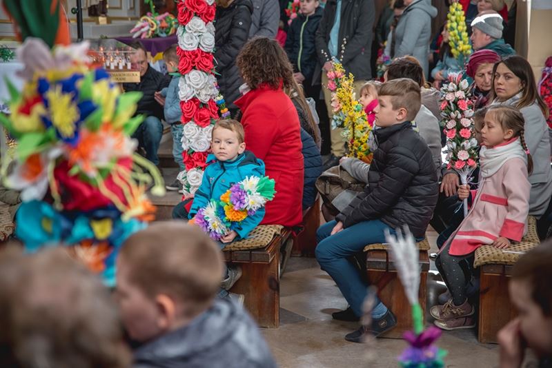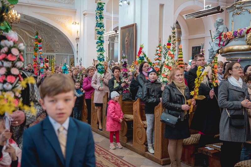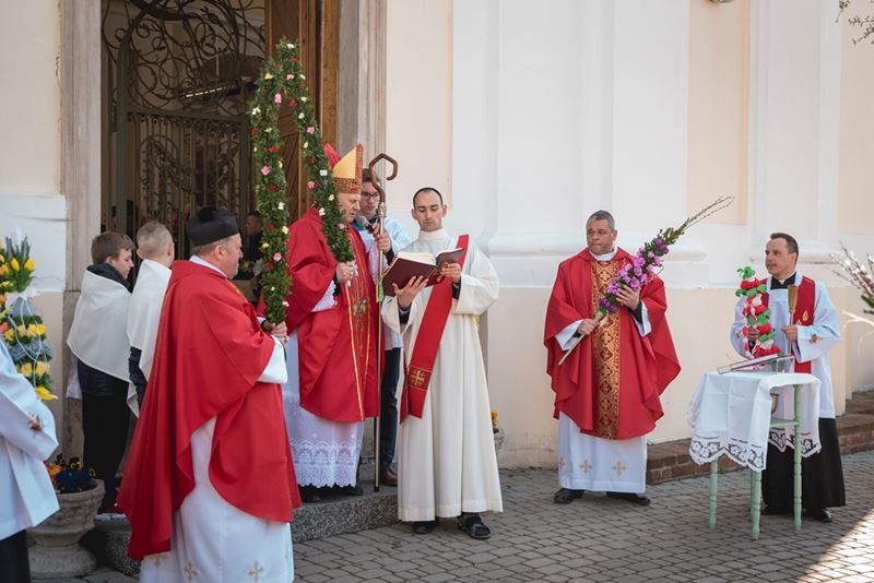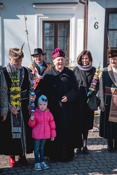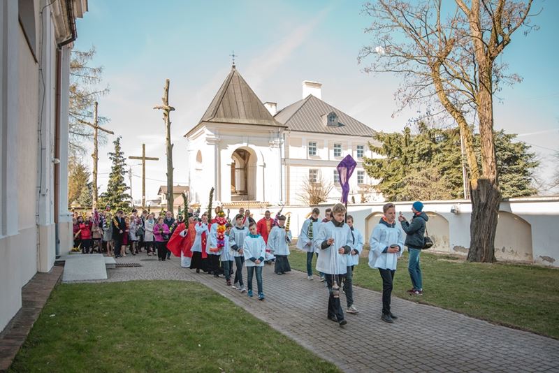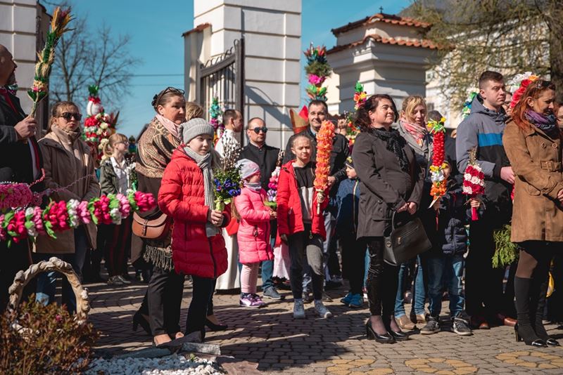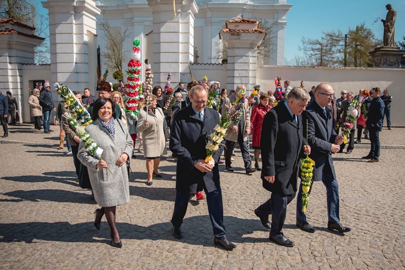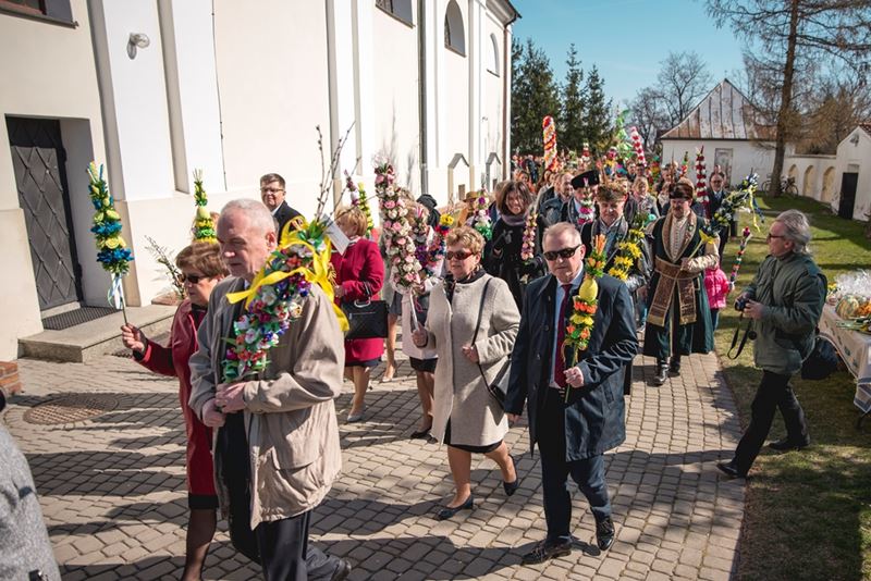 Uroczystość Niedzieli Palmowej pod Patronatem Duchowym Jego Ekscelencji Księdza Biskupa Tadeusza Pikusa Ordynariusza Diecezji Drohiczyńskiej stała się już tradycją w ciechanowieckiej parafii pw. Trójcy Przenajświętszej w Ciechanowcu. Ten dzień był jednocześnie zakończeniem i podsumowaniem XXII Konkursu na Wykonanie Palmy Wielkanocnej, organizowanego przez Muzeum Rolnictwa im. ks. Krzysztofa Kluka w Ciechanowcu, Starostwo Powiatowe w Wysokiem Mazowieckiem oraz Parafię pw. Trójcy Przenajświętszej w Ciechanowcu. O godz. 9.30 uczestnicy konkursu ze swoimi palmami przywitali przed plebanią gości oraz JE Księdza Biskupa, który poprowadził uroczystą procesję Niedzieli Palmowej do kościoła na Mszę Świętą i poświęcił wszystkie palmy.