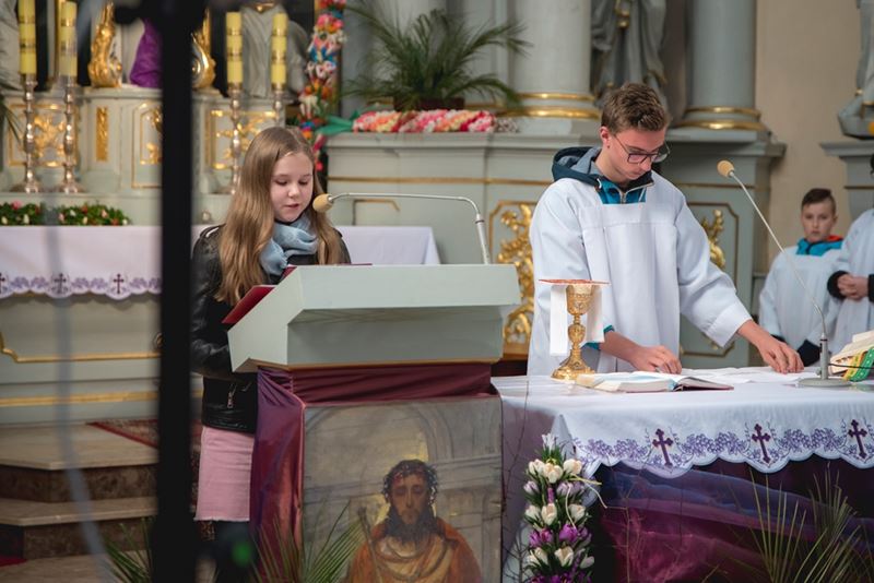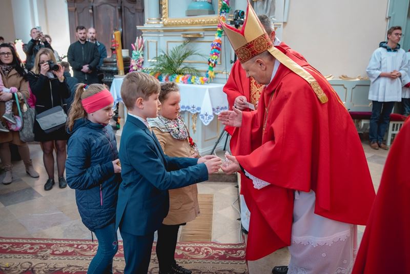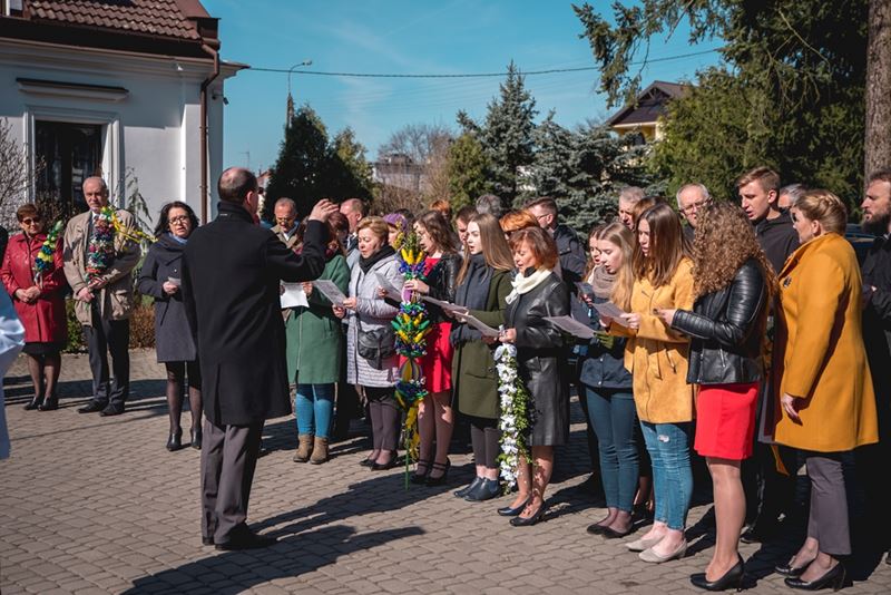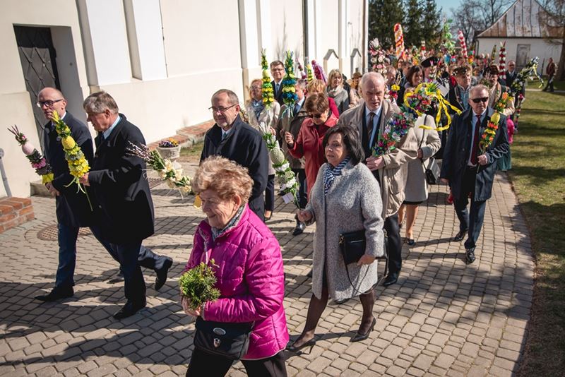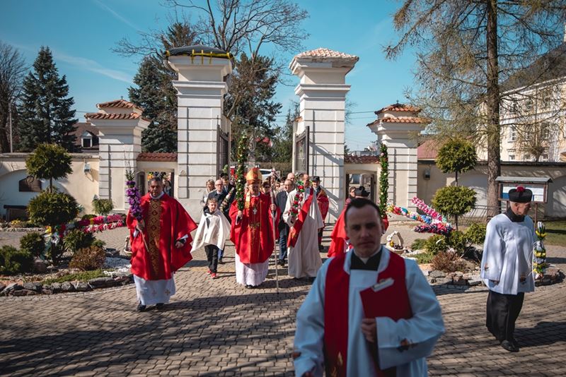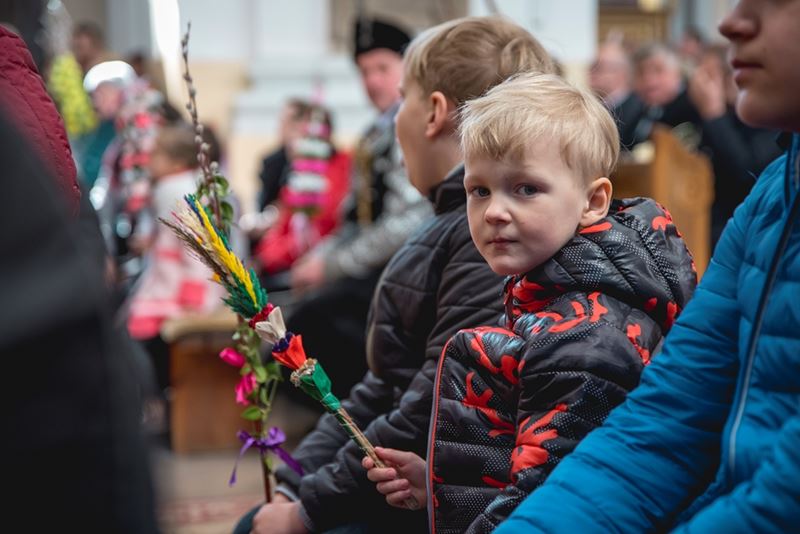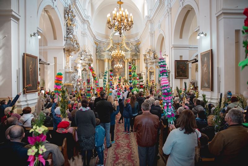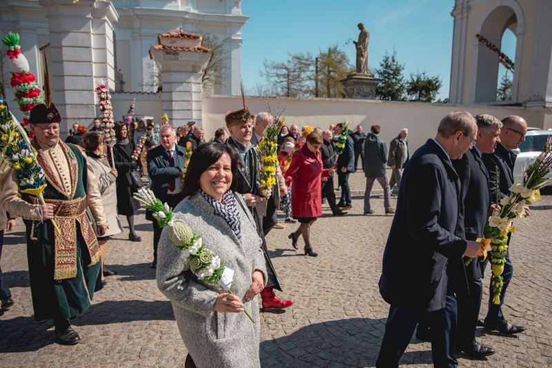 Uroczystość Niedzieli Palmowej pod Patronatem Duchowym Jego Ekscelencji Księdza Biskupa Tadeusza Pikusa Ordynariusza Diecezji Drohiczyńskiej stała się już tradycją w ciechanowieckiej parafii pw. Trójcy Przenajświętszej w Ciechanowcu. Ten dzień był jednocześnie zakończeniem i podsumowaniem XXII Konkursu na Wykonanie Palmy Wielkanocnej, organizowanego przez Muzeum Rolnictwa im. ks. Krzysztofa Kluka w Ciechanowcu, Starostwo Powiatowe w Wysokiem Mazowieckiem oraz Parafię pw. Trójcy Przenajświętszej w Ciechanowcu. O godz. 9.30 uczestnicy konkursu ze swoimi palmami przywitali przed plebanią gości oraz JE Księdza Biskupa, który poprowadził uroczystą procesję Niedzieli Palmowej do kościoła na Mszę Świętą i poświęcił wszystkie palmy.