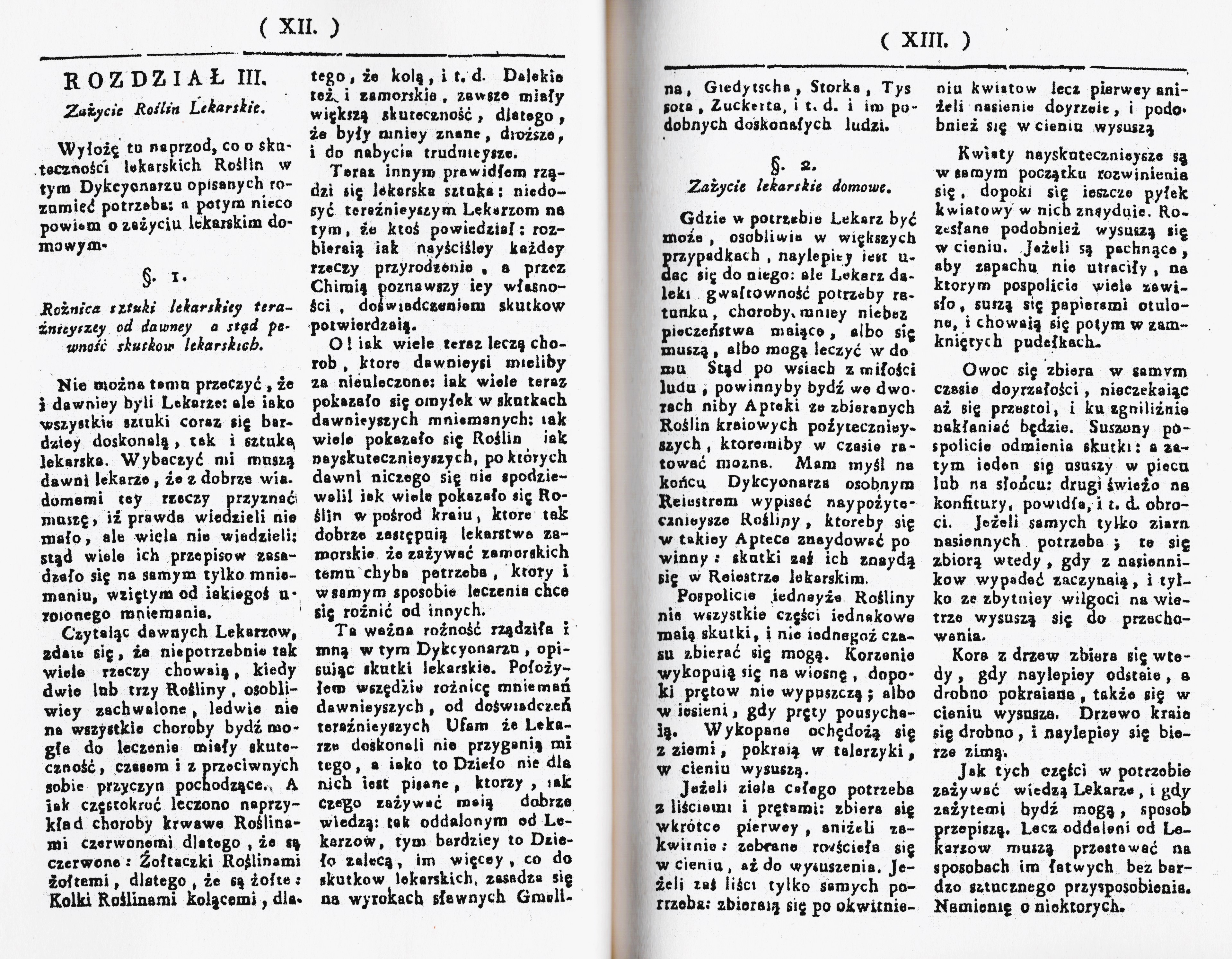 Żywa chęć przysłużenia się kraiowi pobudziła mię do uczynienia ofiary z miareczki sposobności moiey i pisania Dykcyonarza roślinnego… Od lat kilku pobudzony chęcią pisania o Roślinach, ile mogłem przyłożyłem starania poznać iak naywięcey Roślin krajowych, podług znaków układu Linneuszowego. Dlatego, kiedykolwiek mi tylko sposobność gdzie pozwoliła, korzystałem z niey przezieraiąc Lasy, Łąki, Pola, Ogrody…