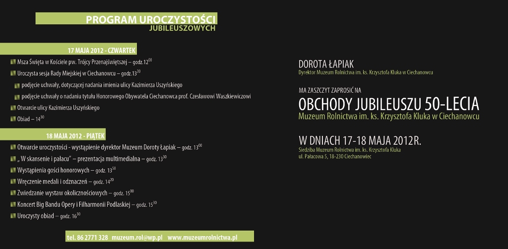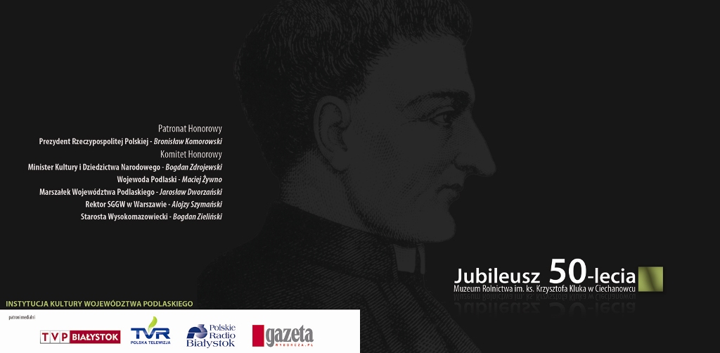 Zaproszenie na Główne uroczystości jubileuszowe Muzeum Rolnictwa im. ks. Krzysztofa Kluka w Ciechanowcu 15-17 maja