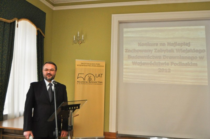 18 listopada w Muzeum Rolnictwa im. ks. Krzysztofa Kluka w Ciechanowcu odbyła się uroczystość podsumowania Konkursu na Najlepiej Zachowany Zabytek Wiejskiego Budownictwa Drewnianego w Województwie Podlaskim w 2012 r. i wręczenia nagród, dyplomów, katalogów prezentujących obiekty biorące udział w Konkursie i tabliczek do umocowania na domach laureatów.