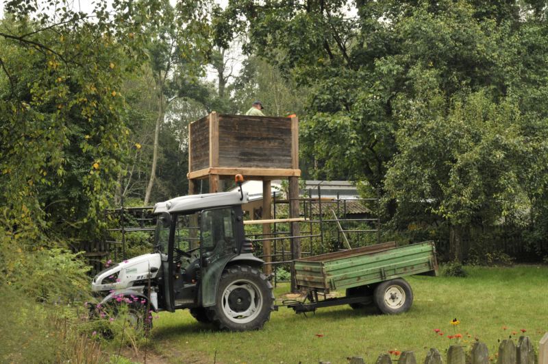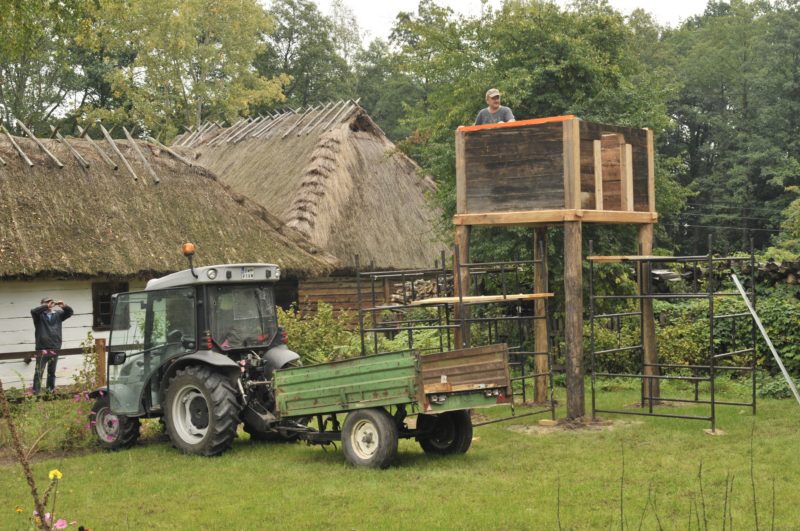 Wymarzonym miejscem w skansenie do posadowienia rekonstruowanego obiektu był maleńki sadek obok szlacheckiego dworku z 1840 roku, który odpowiada okresowi opisywanego obiektu przez Z. Glogera.