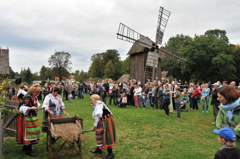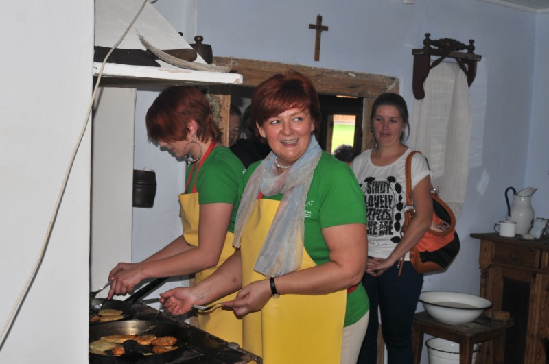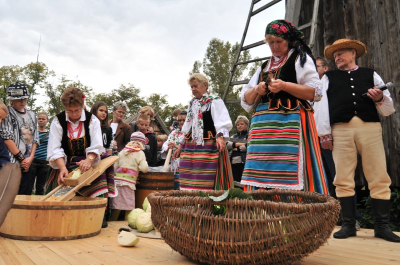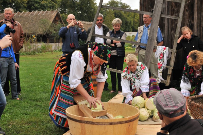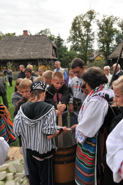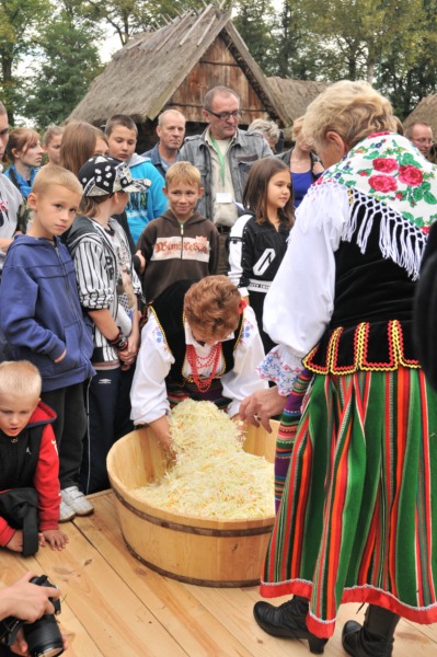 Gospodynie i gospodarze ze wsi Żurobice zorganizowani w zespole folklorystycznym Kalina zaprezentowali pokaz szatkowania kapusty, którą dodając sól i marchew ubili w dębowej beczce. W sąsiedztwie, grupa pań z tego zespołu, prezentowała tradycyjną obróbkę lnu używając międlicy ręcznej, międlicy mechanicznej, klepadła i beczki do wytrzepywania paździerzy.