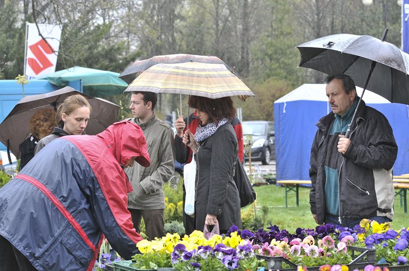 Po raz pierwszy od kilkunastu lat zawiodła nas pogoda! Ciechanowiecki Jarmark Świętego Wojciecha AD 2013 rozpoczął się w strugach deszczu, przy niskiej temperaturze powietrza i bardzo nieprzyjemnym wietrze. Pomimo niesprzyjających warunków pogodowych większość wystawców (twórców ludowych) oraz handlowców nie zawiodła organizatorów. Z tej "naturalnej selekcji" zwycięsko wyszli handlowcy oferujący zwiedzającym "wiosenne" towary: sadzonki, rozsadę warzyw i kwiatów, nasiona czy cebulki kwiatowe. Uznaniem cieszyły się też stoiska gastronomiczne, oferujące gorące potrawy i napoje, bardzo pożądane w tym dniu.