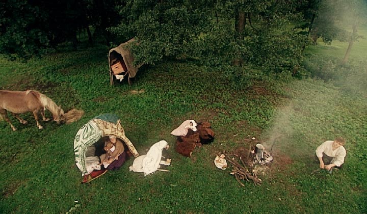 Jest lato 1915 roku. Armia rosyjska wycofująca się z zachodnich guberni Imperium pozostawia nacierającym Niemcom spaloną ziemię. Wypędza chłopskie rodziny, niektórzy uciekają sami, płoną całe wsie. Setki tysięcy wozów suną na wschód. Tarasują drogi, przeciskają się między kolumnami wojska. Rozpętuje się piekło: epidemie tyfusu i cholery, skwar, brak wody do picia, głód, ostrzał i bombardowania nacierających Niemców.
