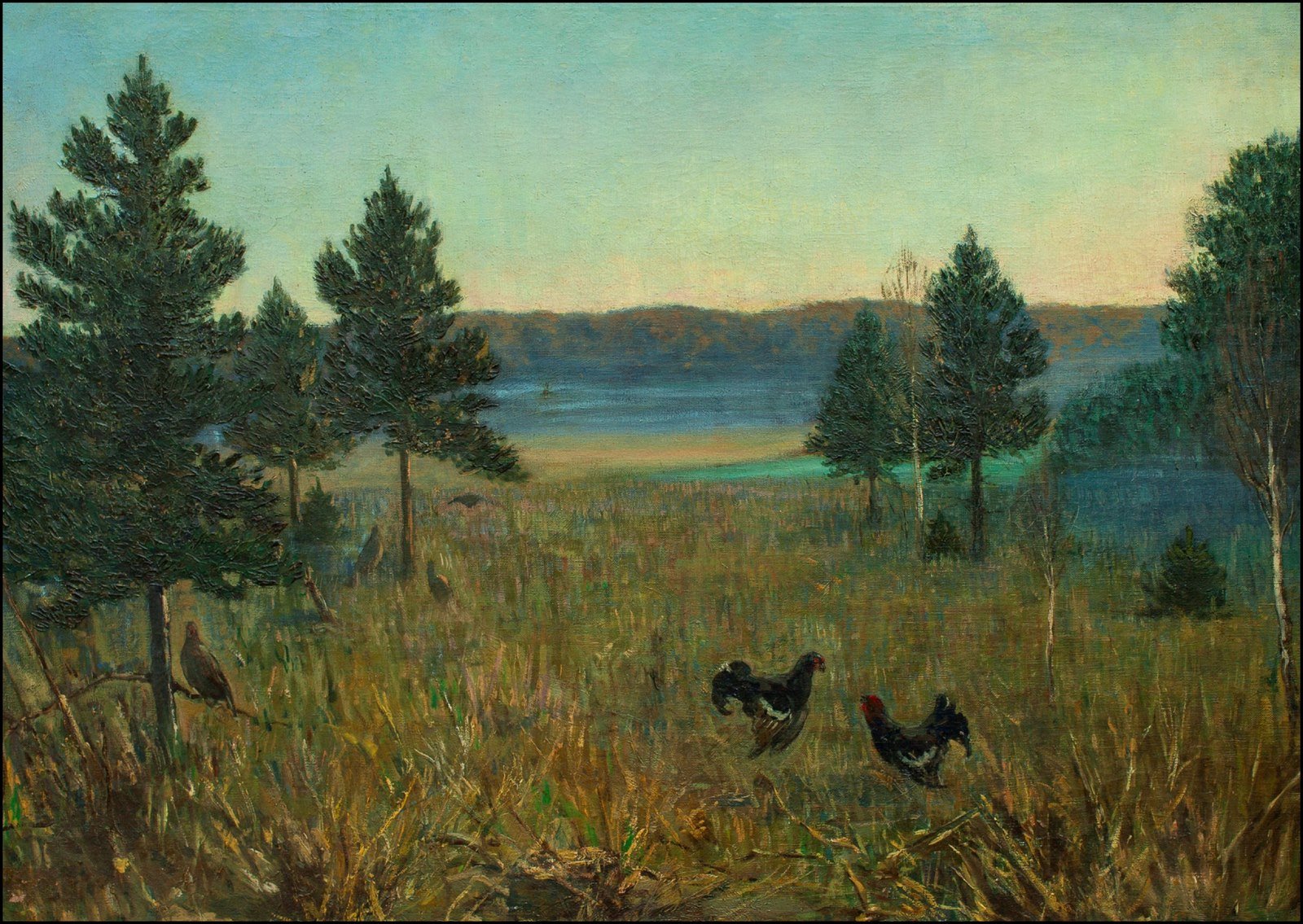 1. OBRAZ OLEJNY NA PŁÓTNIE PT. „TOKUJĄCE CIETRZEWIE”, AUTOR NIEZNANY, DAT. SCHYŁEK XIX W., NR INW. III/356