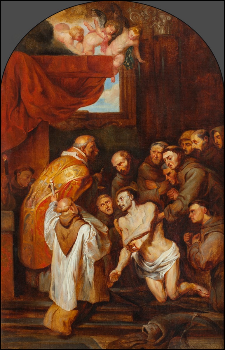 1. OBRAZ OLEJNY NA PŁÓTNIE – KOPIA DZIEŁA PETERA PAULA RUBENSA PT. „OSTATNIA KOMUNIA ŚW. FRANCISZKA Z ASYŻU”, AUTOR NIEZNANY, DAT. 1740-60, NR INW. C/III/6937