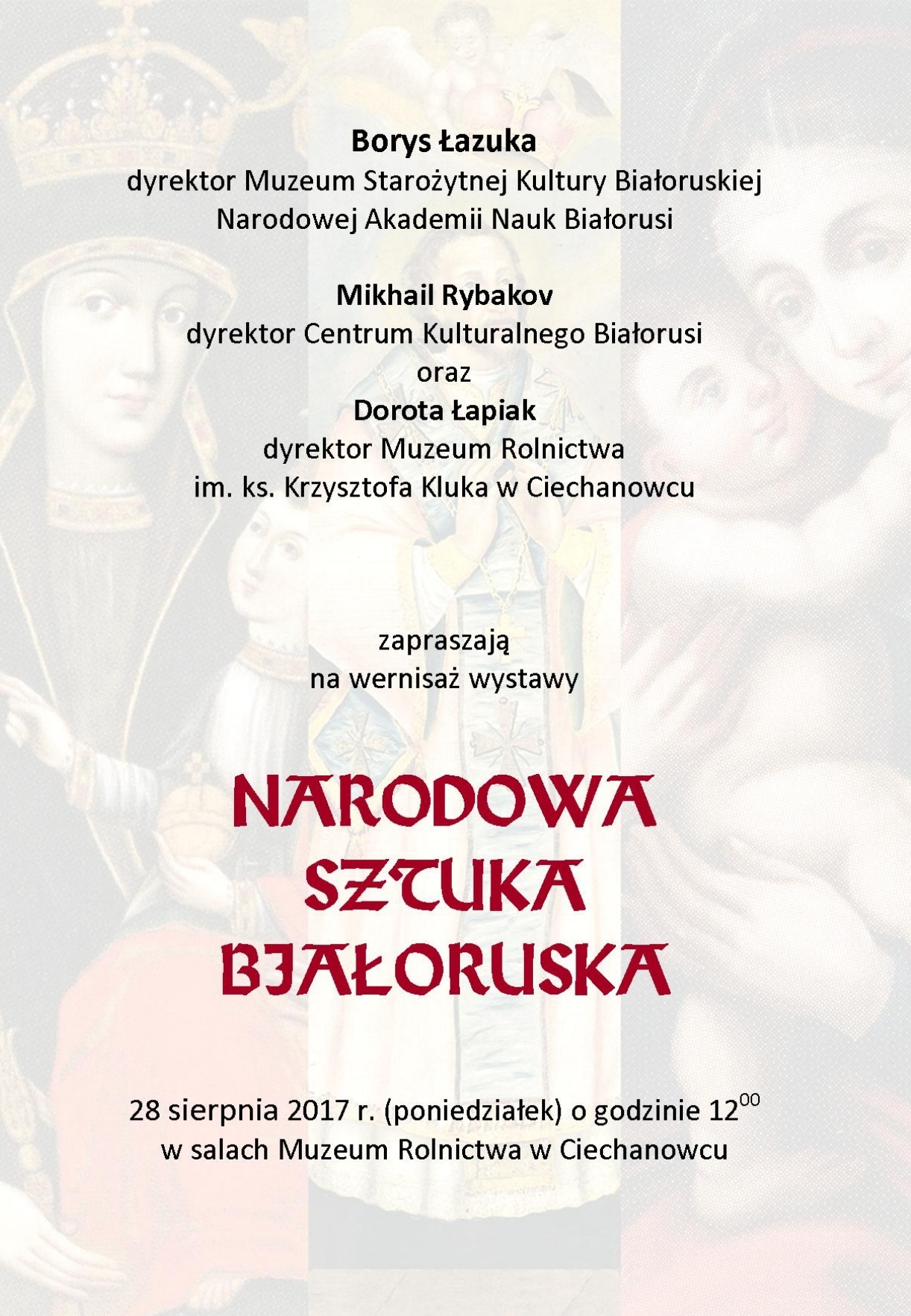 Wystawa "Narodowa Sztuka Białoruska" potrwa od 28 sierpnia do 24 września 2017 roku, na którą serdecznie zapraszamy!