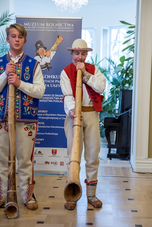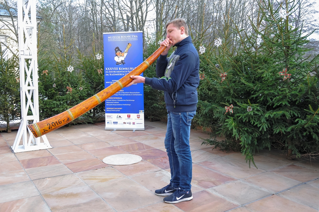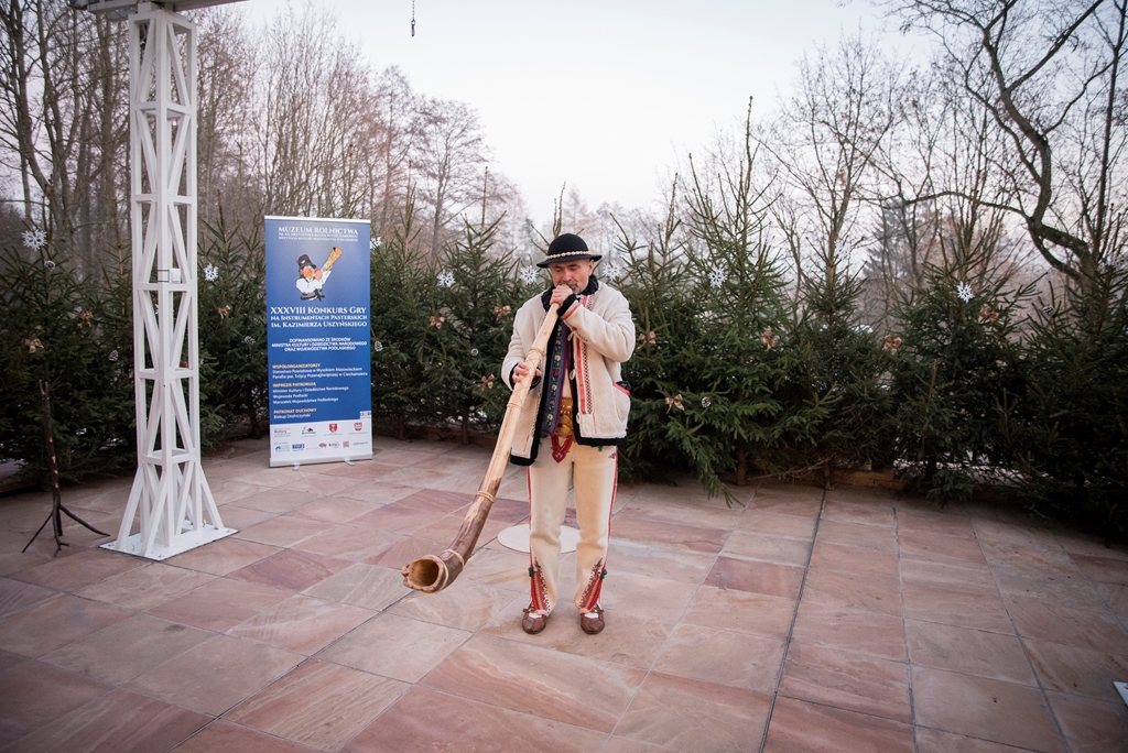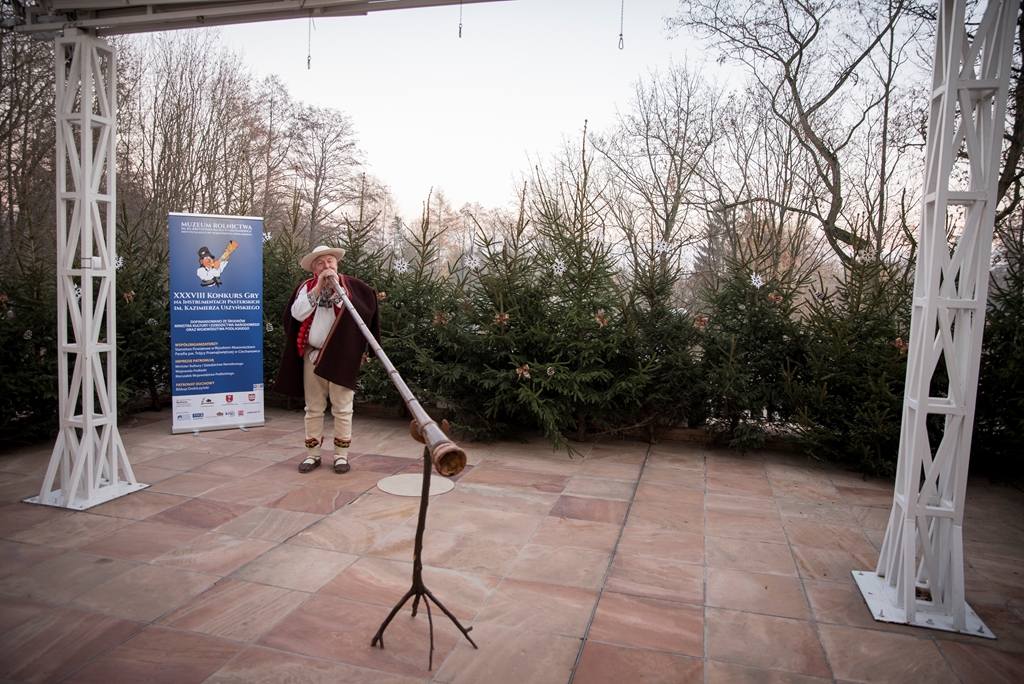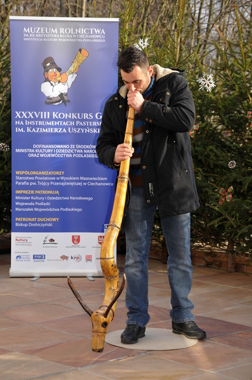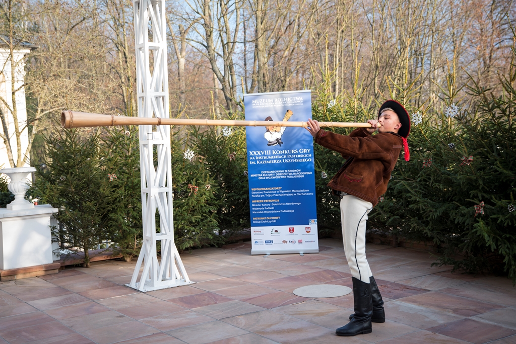 W XXXVIII Konkursie Gry na Instrumentach Pasterskich wzięli udział instrumentaliści grający na mazowiecko-podlaskich ligawkach, góralskich trombitach, kaszubskich bazunach, rogach oraz innych instrumentach pasterskich.