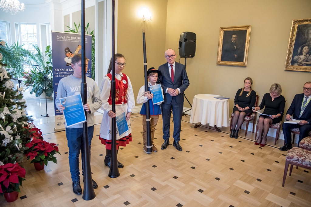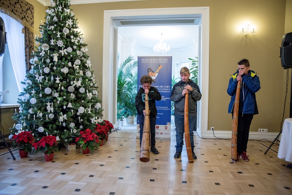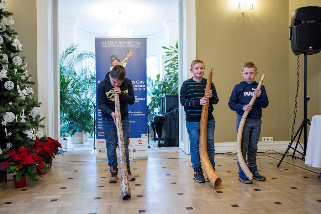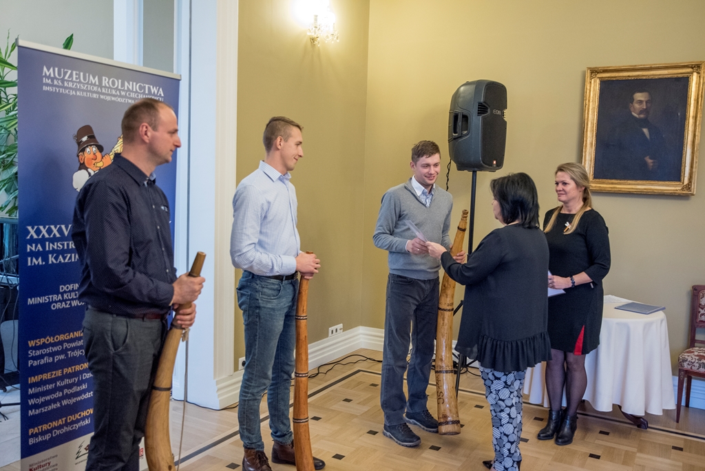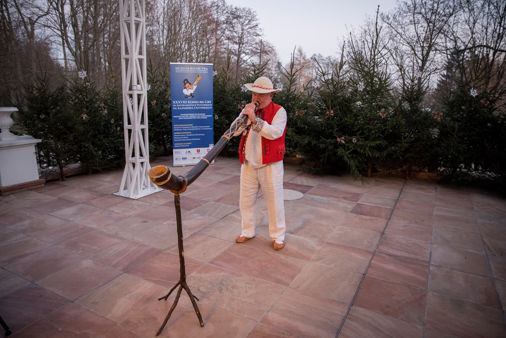 W XXXVIII Konkursie Gry na Instrumentach Pasterskich wzięli udział instrumentaliści grający na mazowiecko-podlaskich ligawkach, góralskich trombitach, kaszubskich bazunach, rogach oraz innych instrumentach pasterskich.