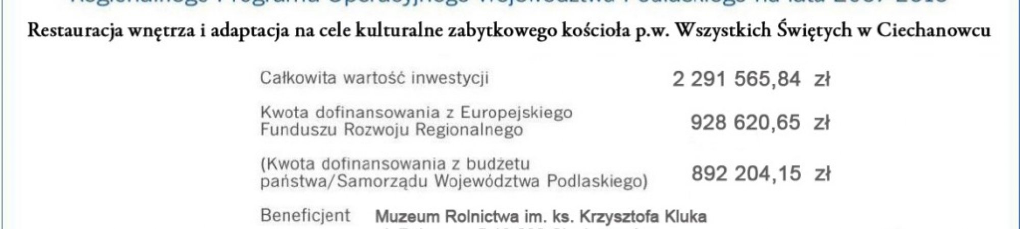 Restauracja wnętrza i adaptacja na cele kulturalne zabytkowego kościoła p.w. Wszystkich Świętych w Ciechanowcu